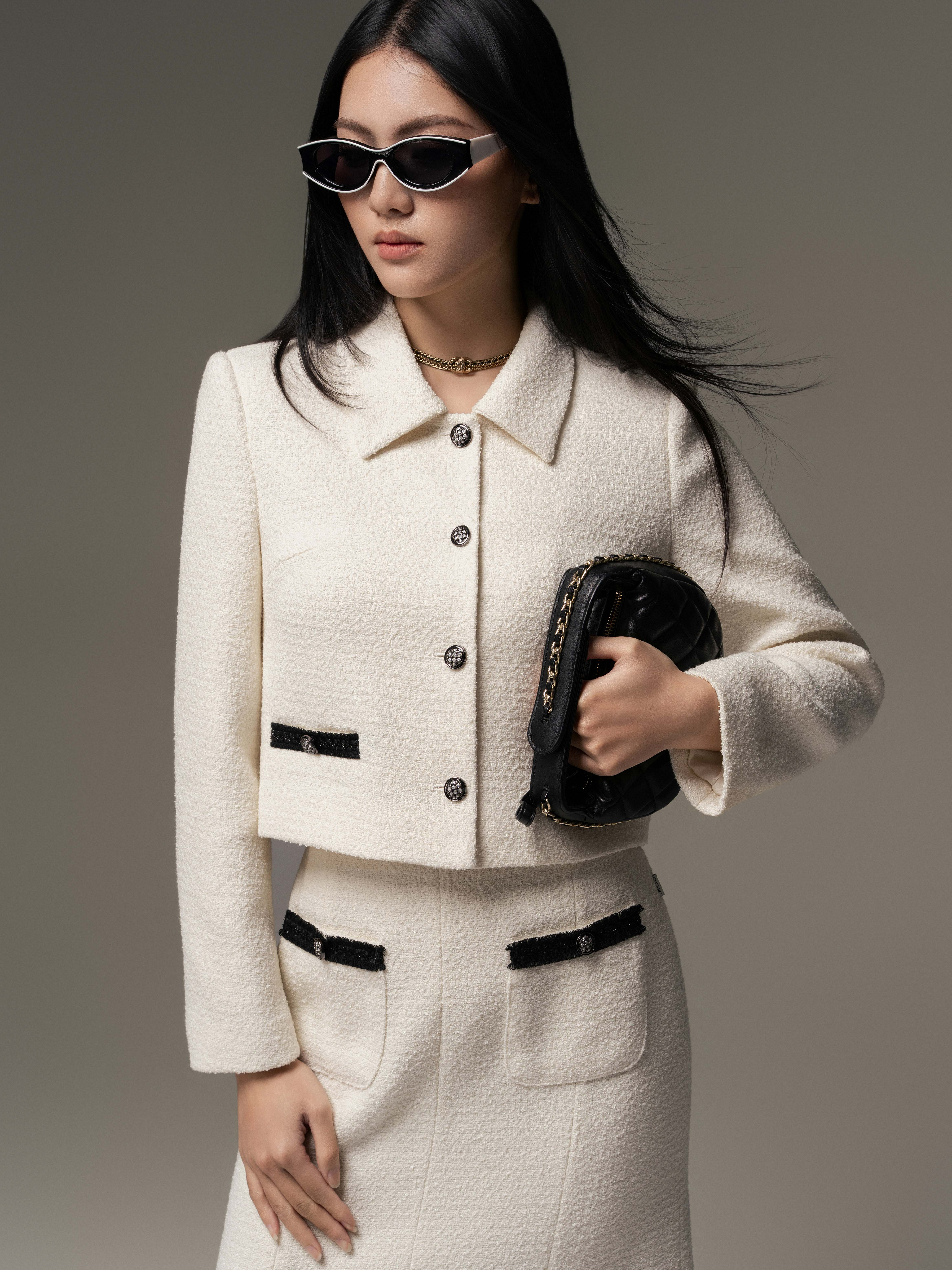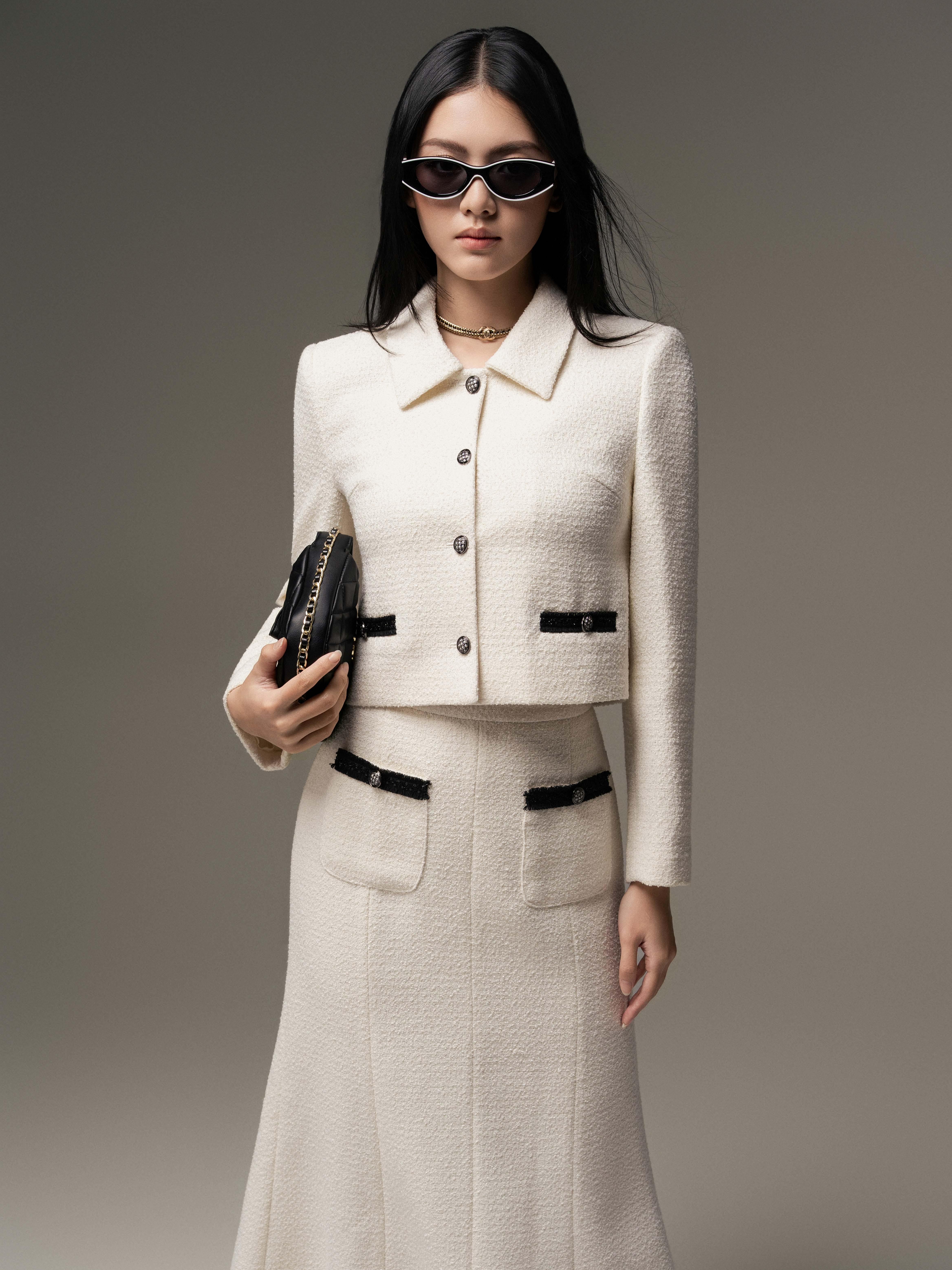 Áo dạ tweed cổ bẻ phối viền túi_CV.5-1115