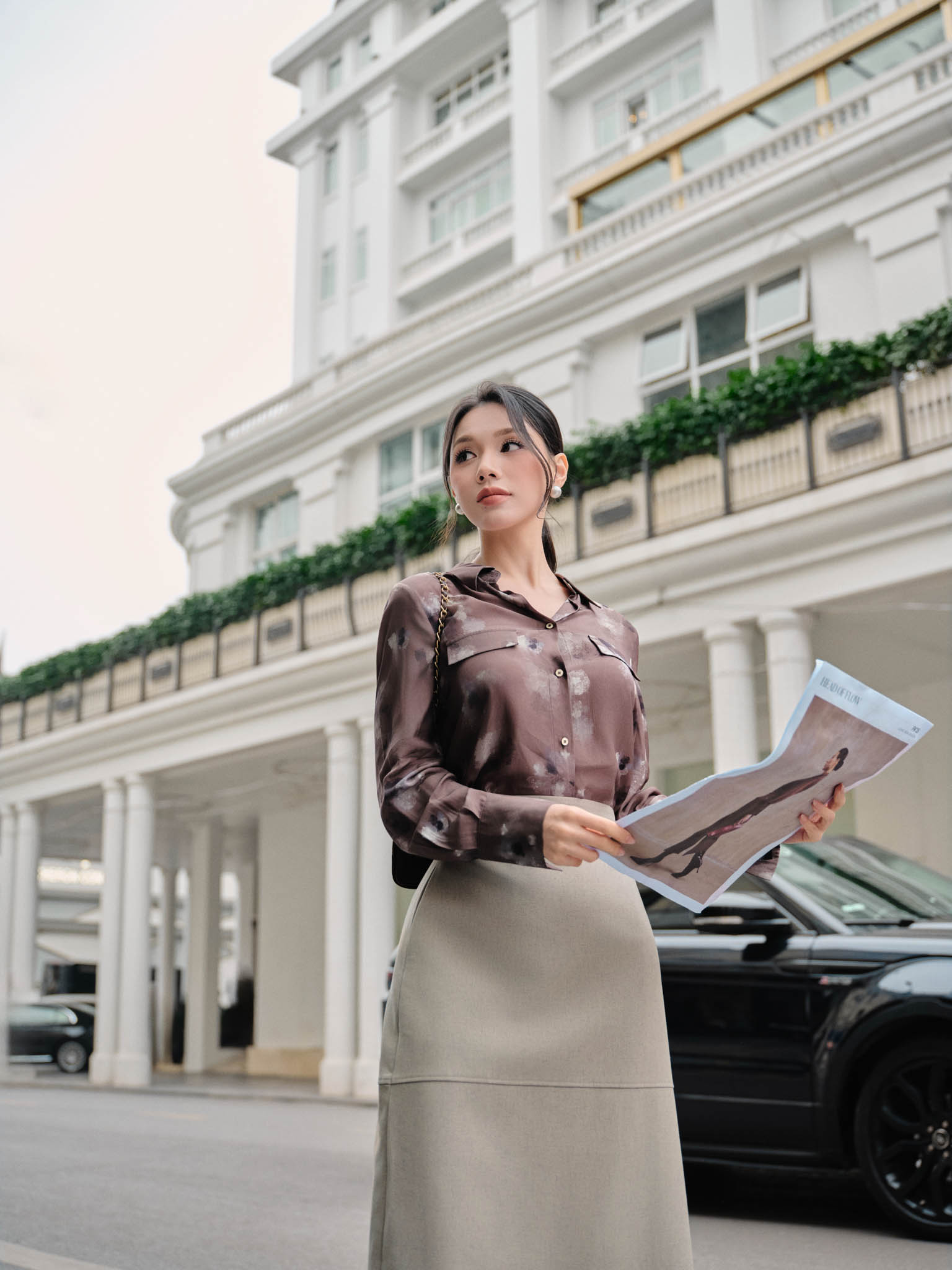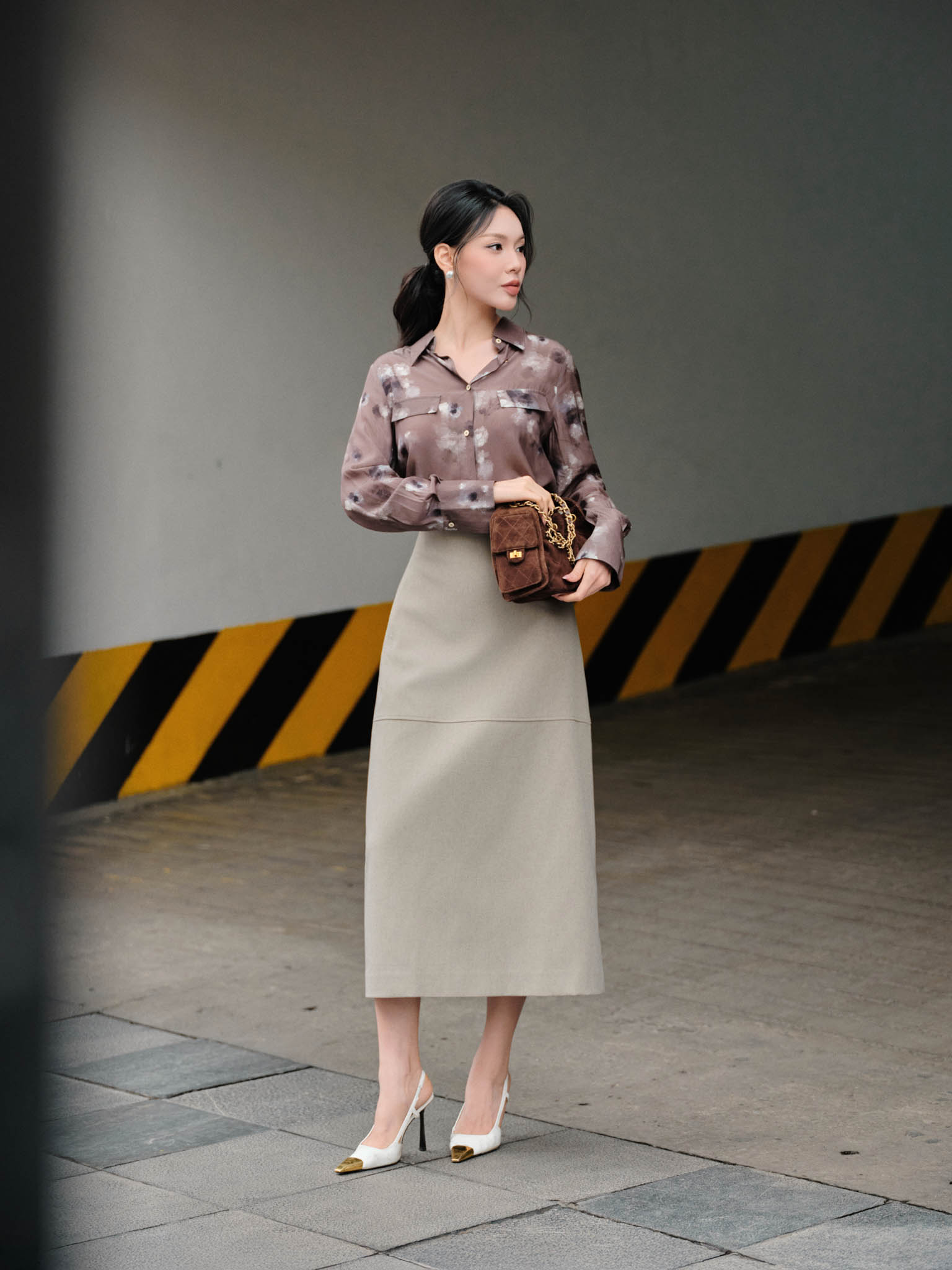 Áo sơ mi cổ đức tay dài có nắp túi ngực