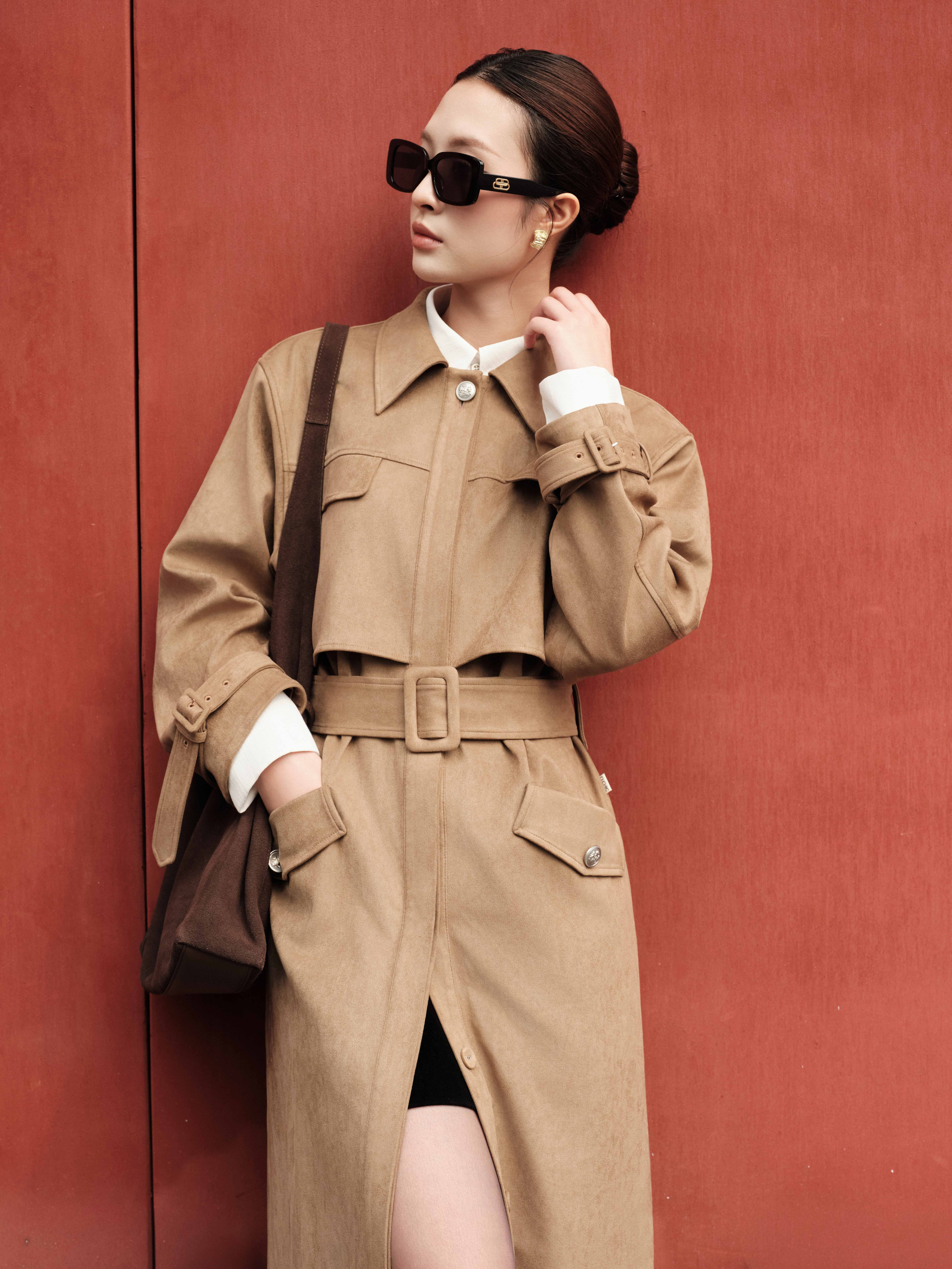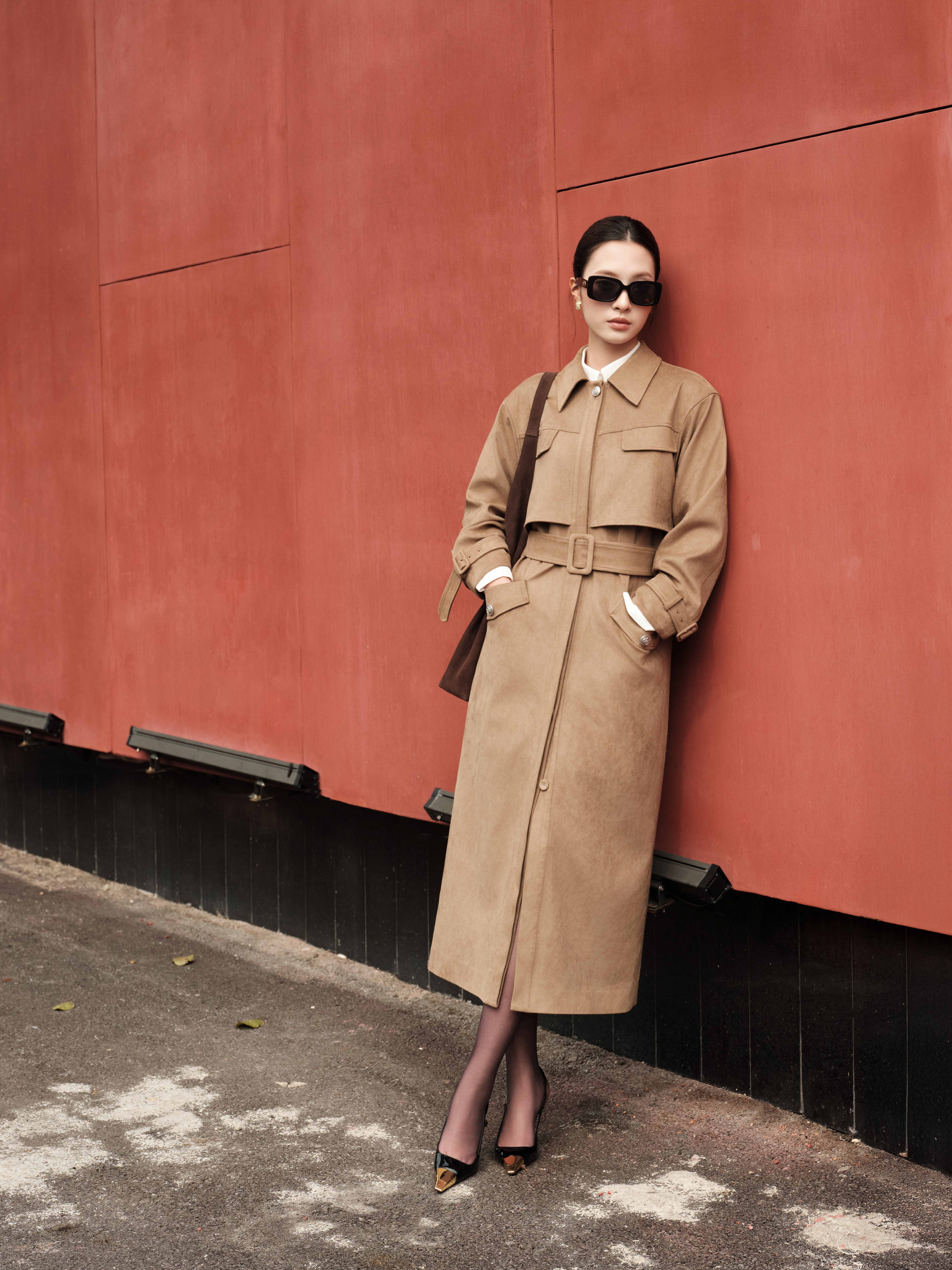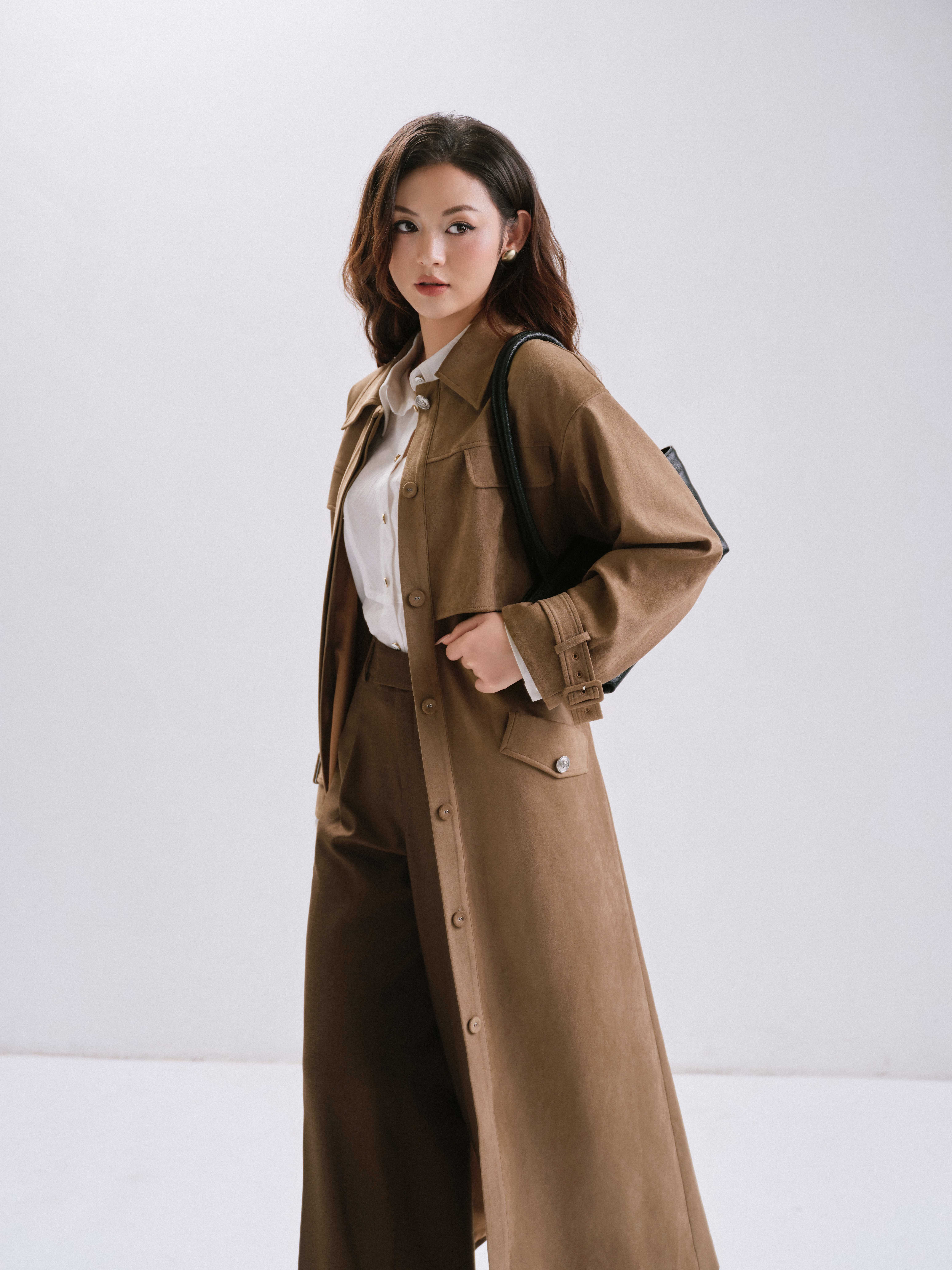 Chân váy da dáng bút chì bổ mảnh xẻ trước