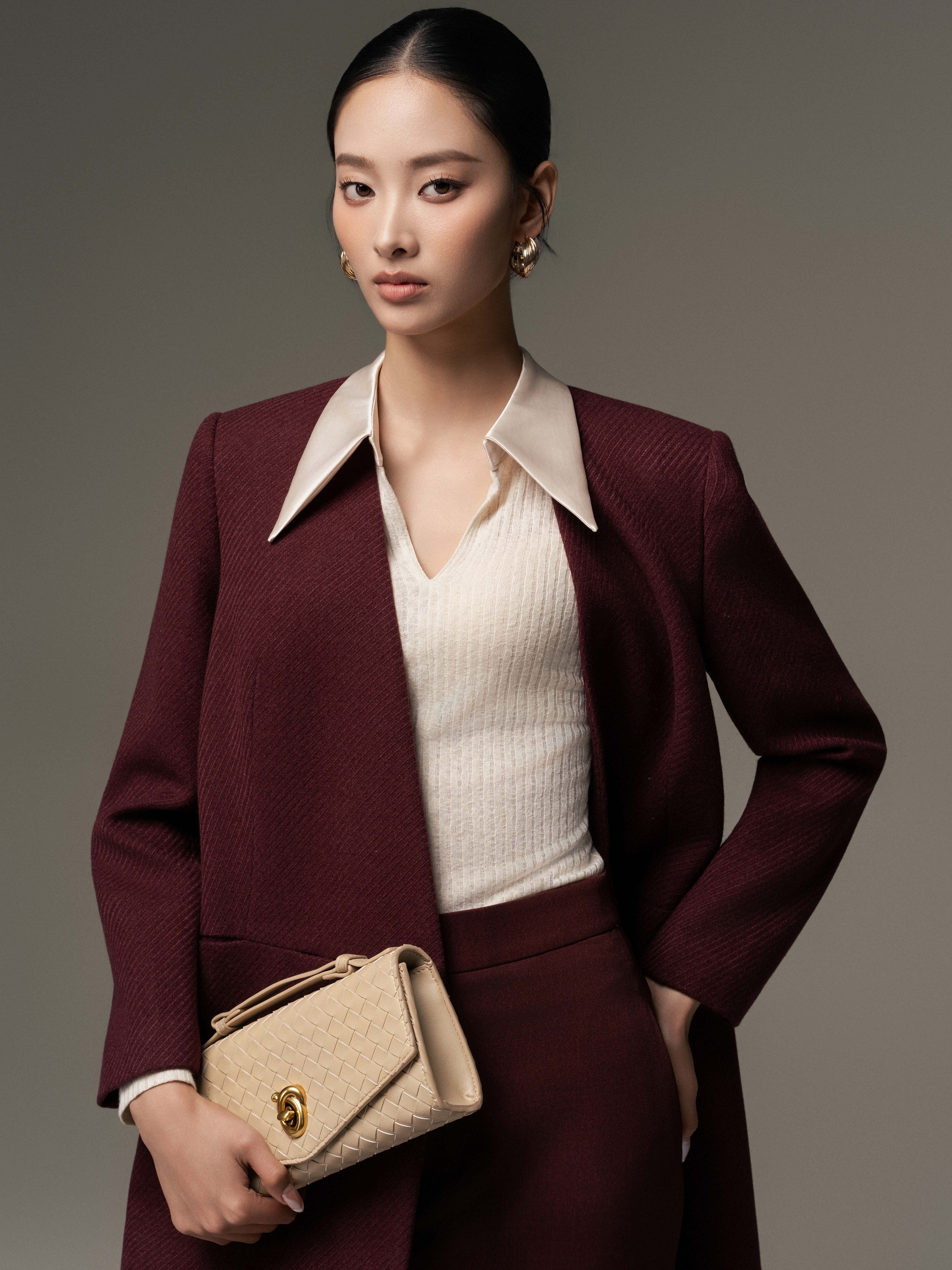 Áo vest tweed cổ xẻ V gấu tua rua_CV.5-1208