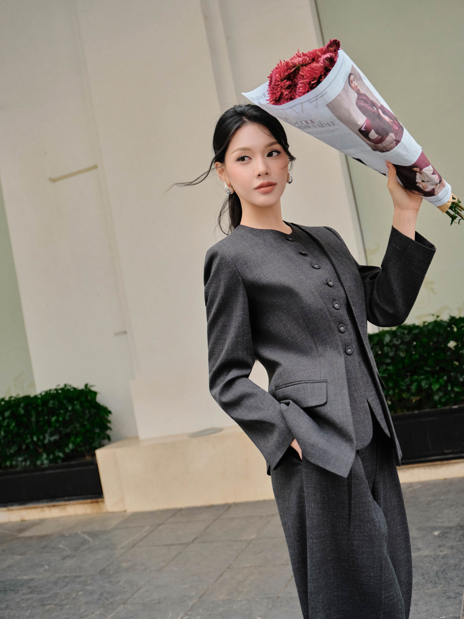 Áo jacket cổ đức túi cơi ngực