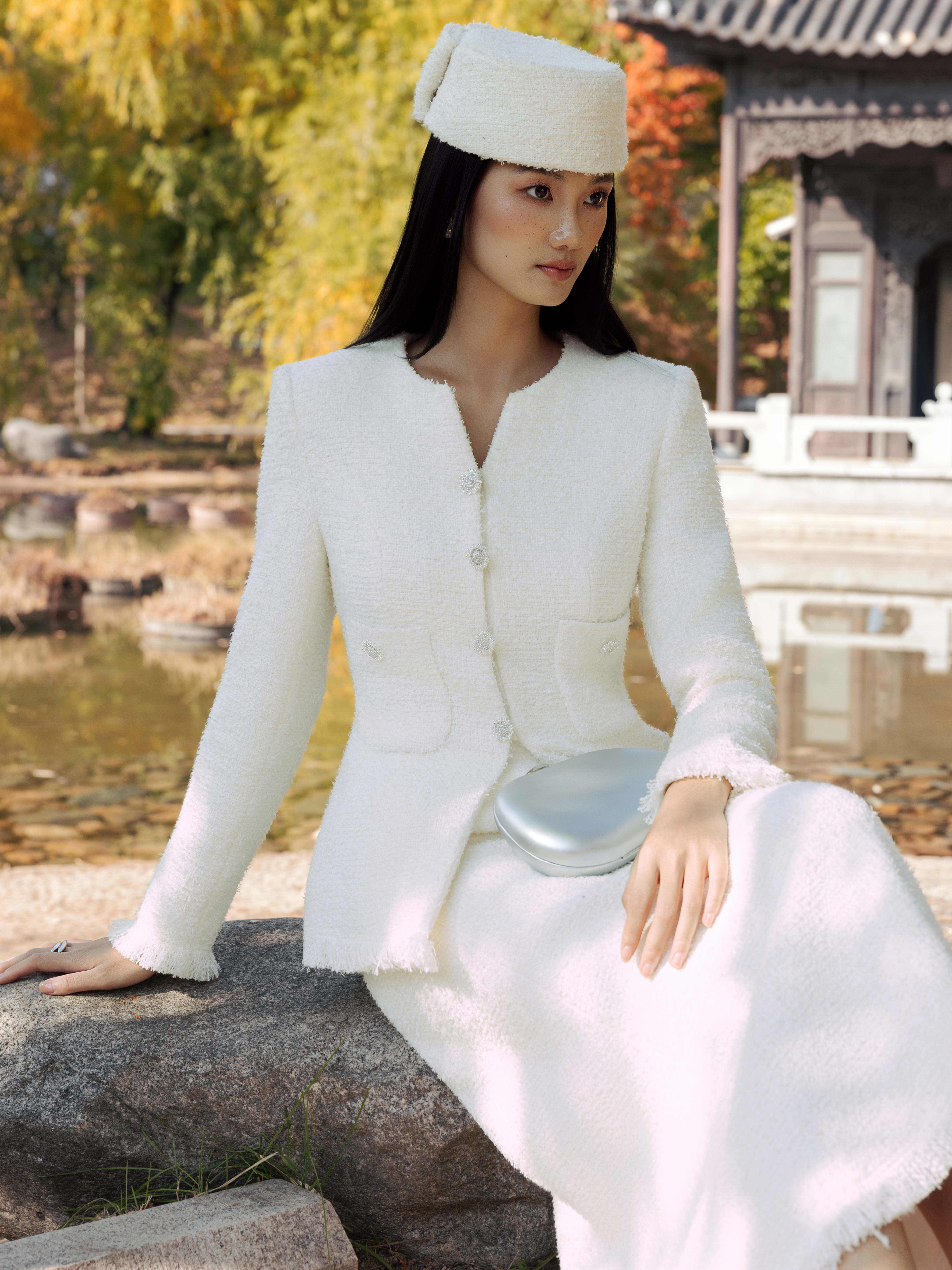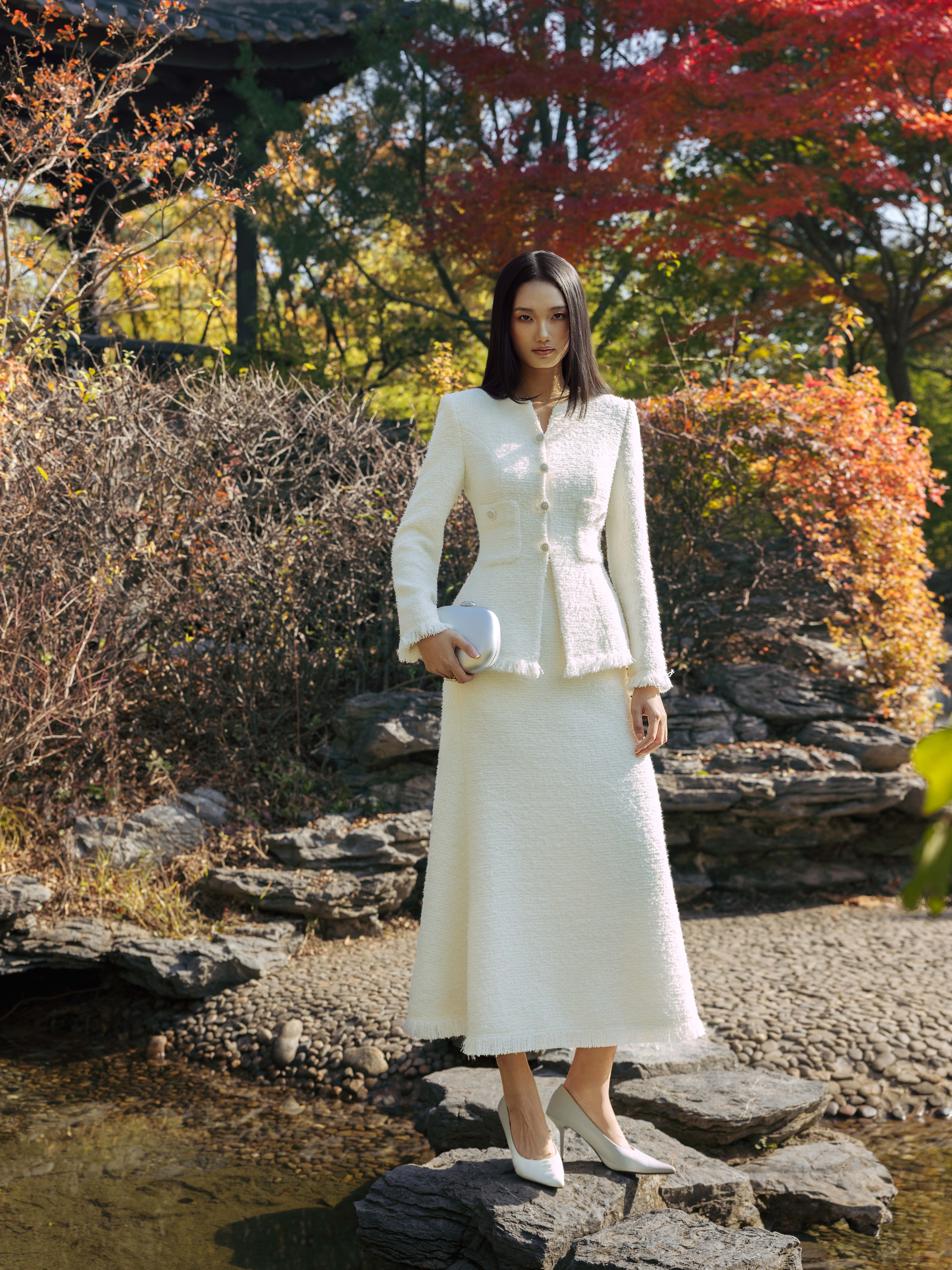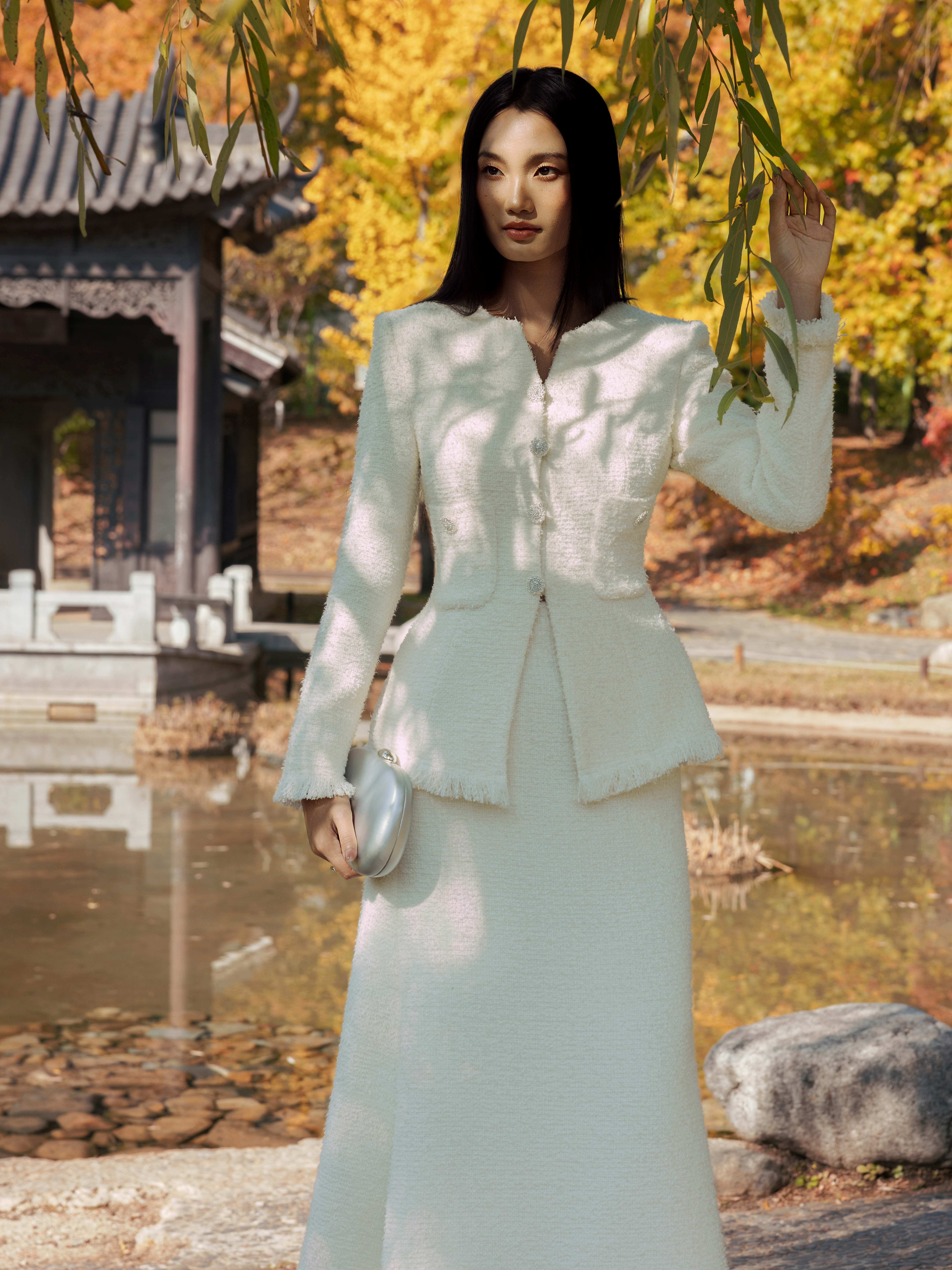 Chân váy midi tweed gấu tua rua_AV.5-1016