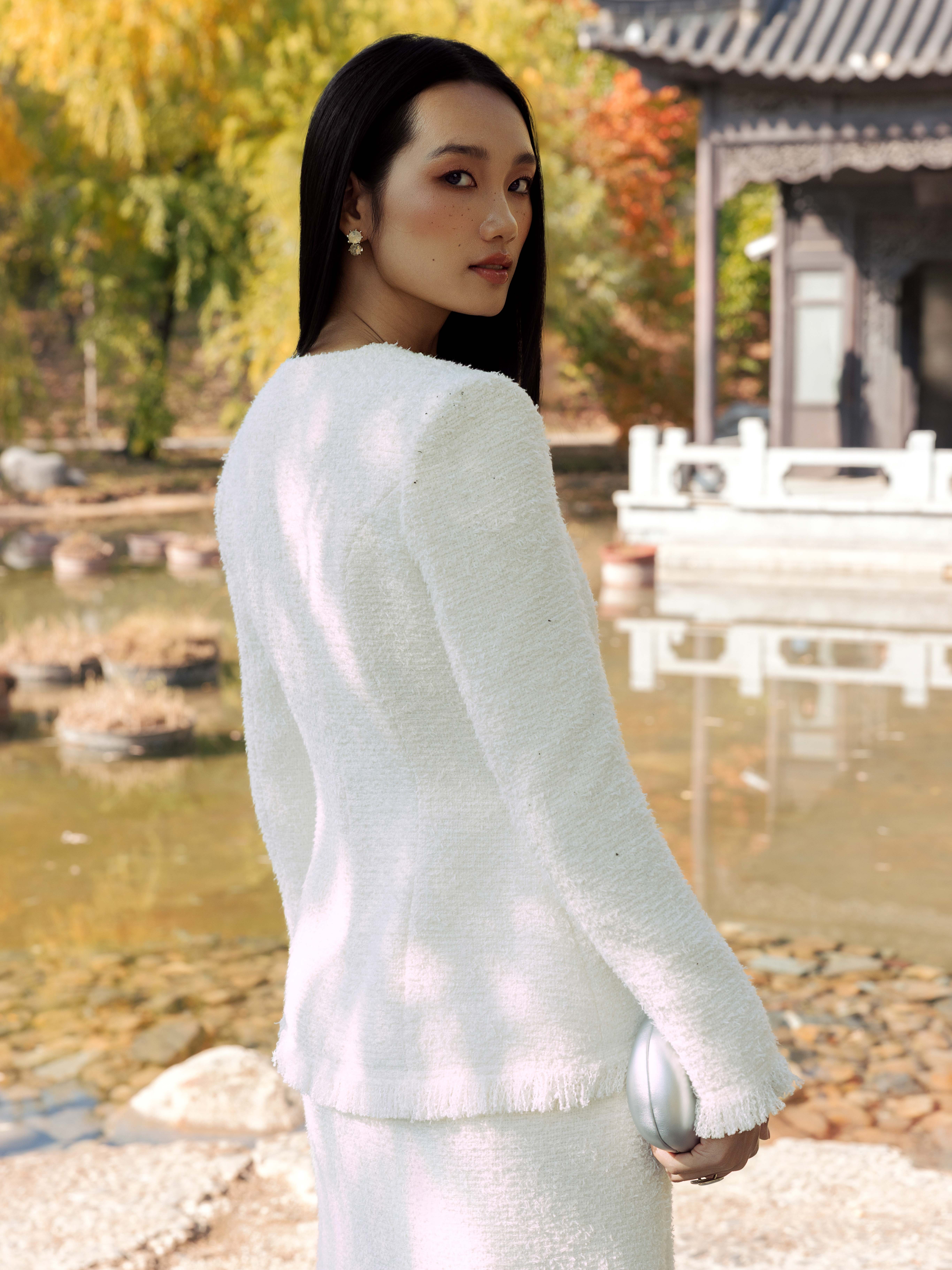 Áo vest tweed cổ xẻ V gấu tua rua_CV.5-1208