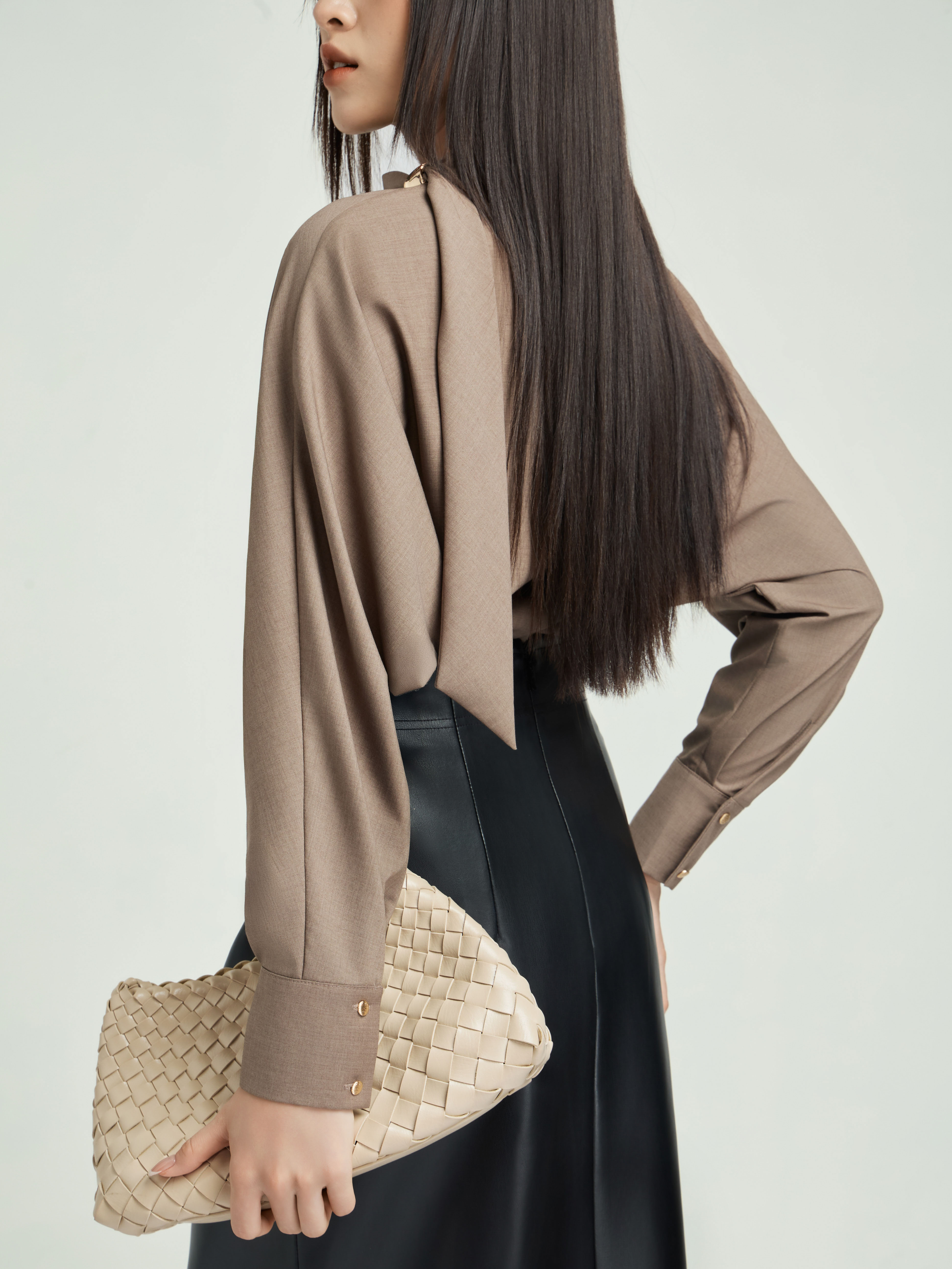 Áo sơ mi cổ dây nơ tay dài