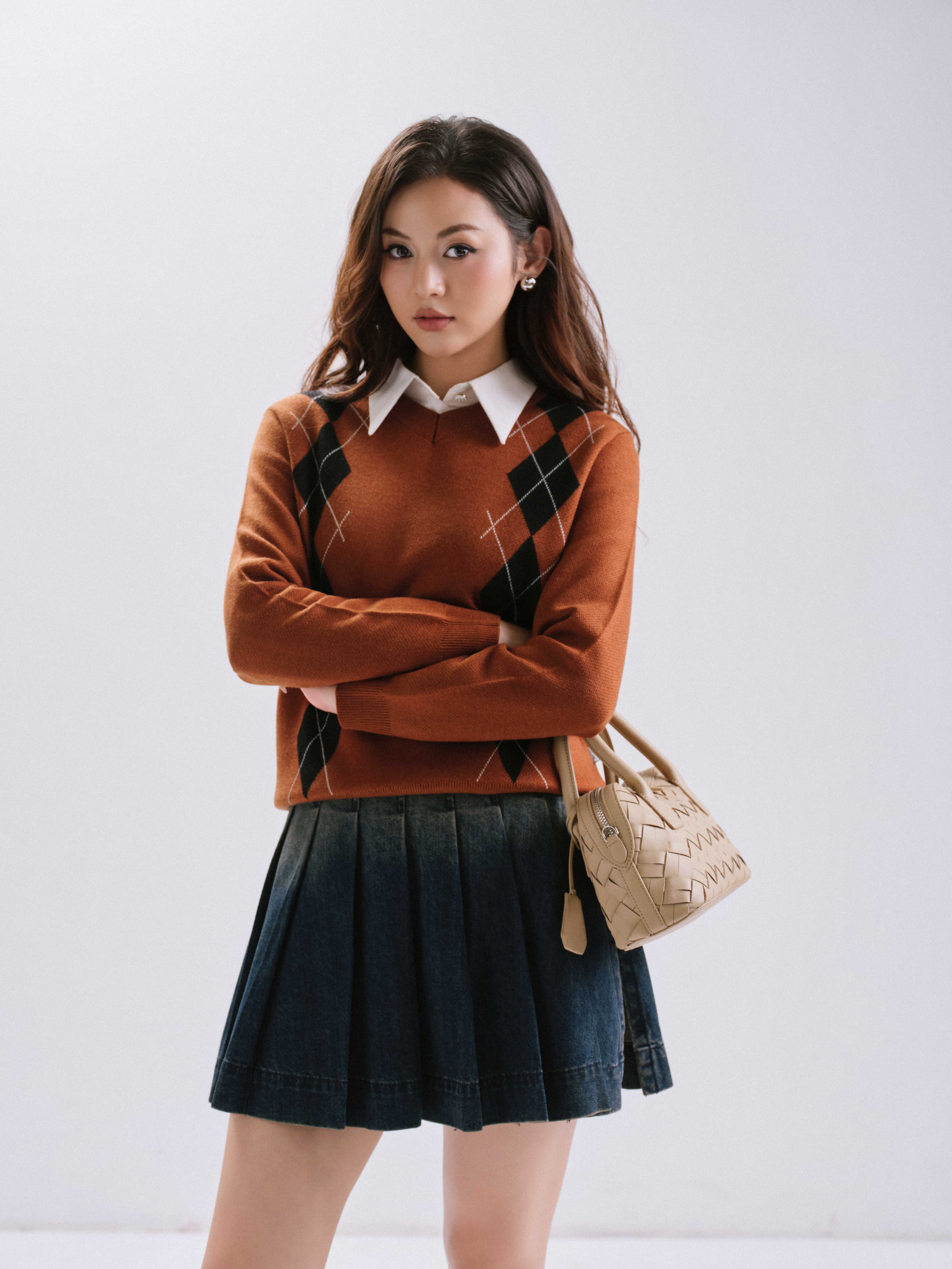 Áo len cổ tròn dài tay, nẹp bong-DHC2517
