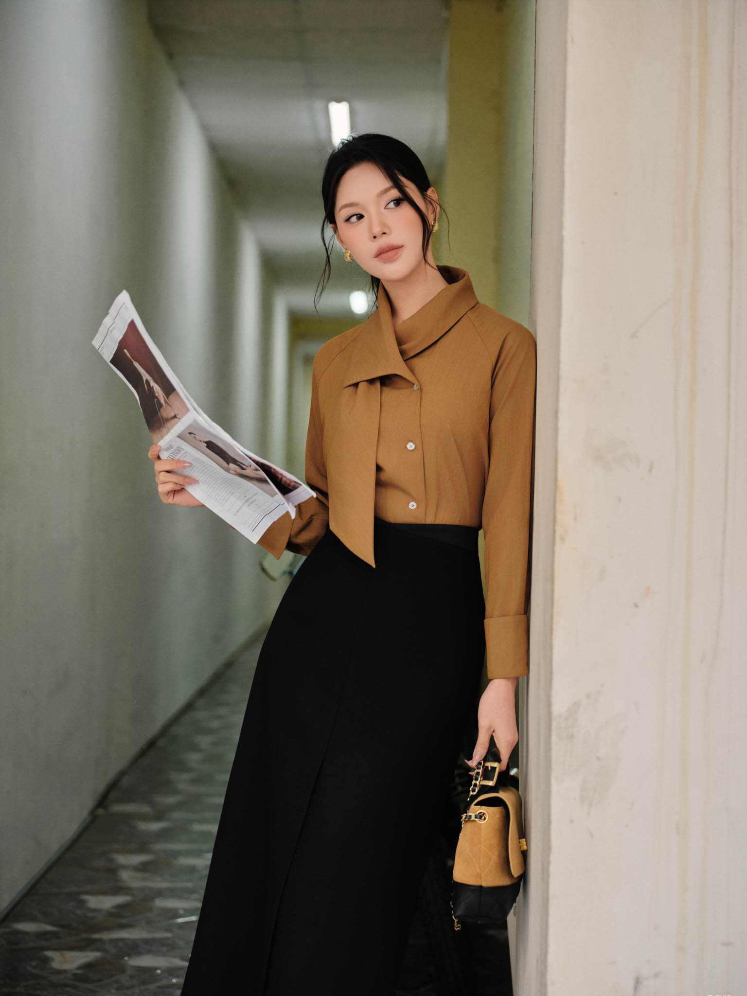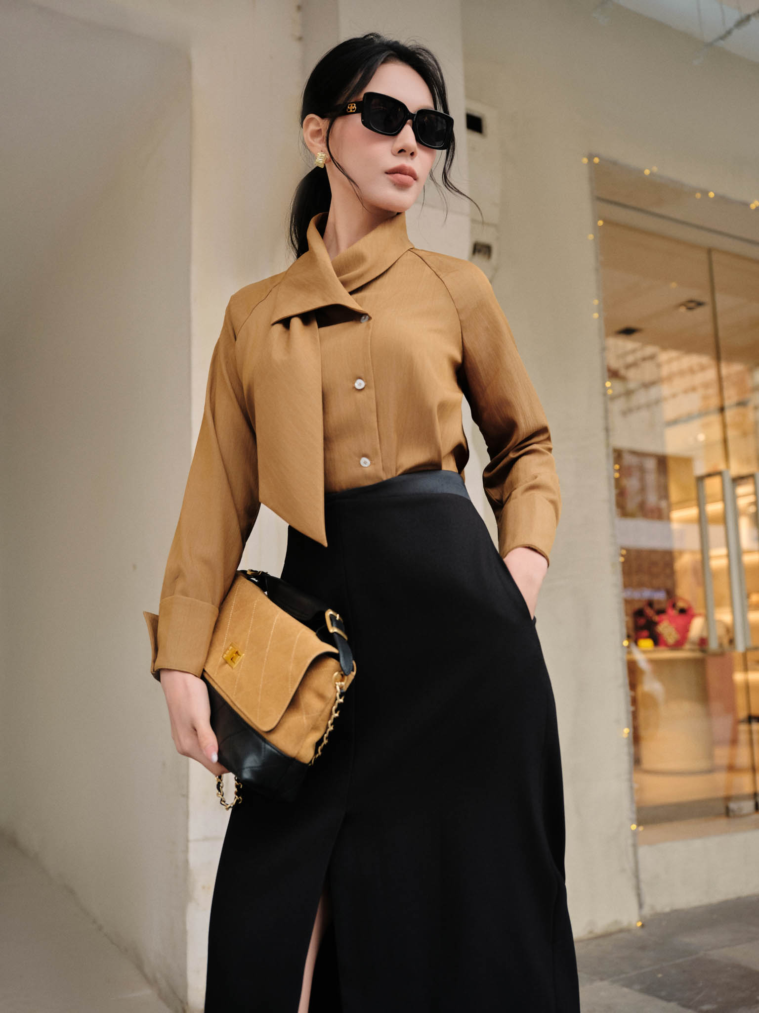 Áo sơ mi vạt lệch cổ khăn