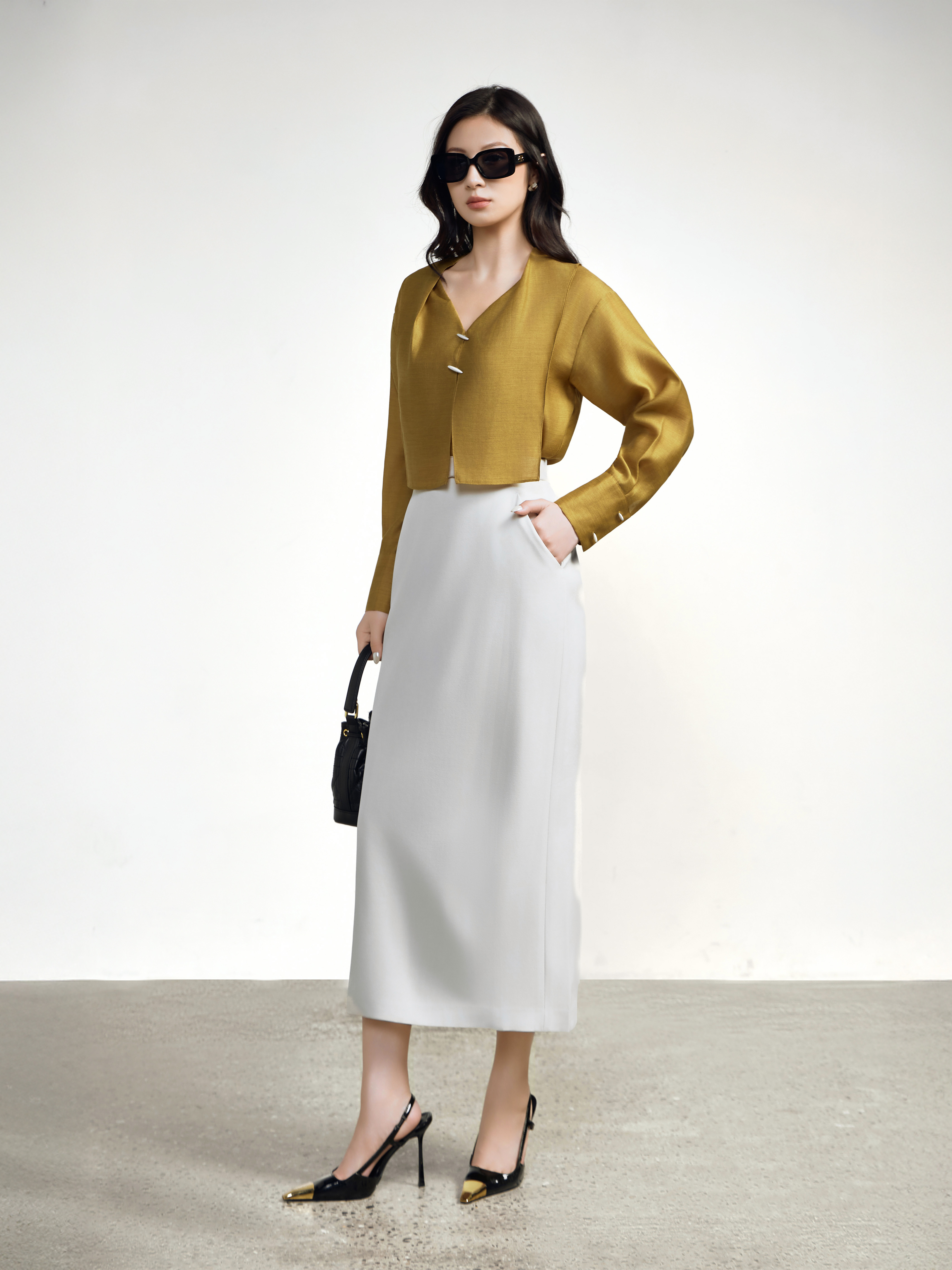 Chân váy midi ôm cạp cách điệu