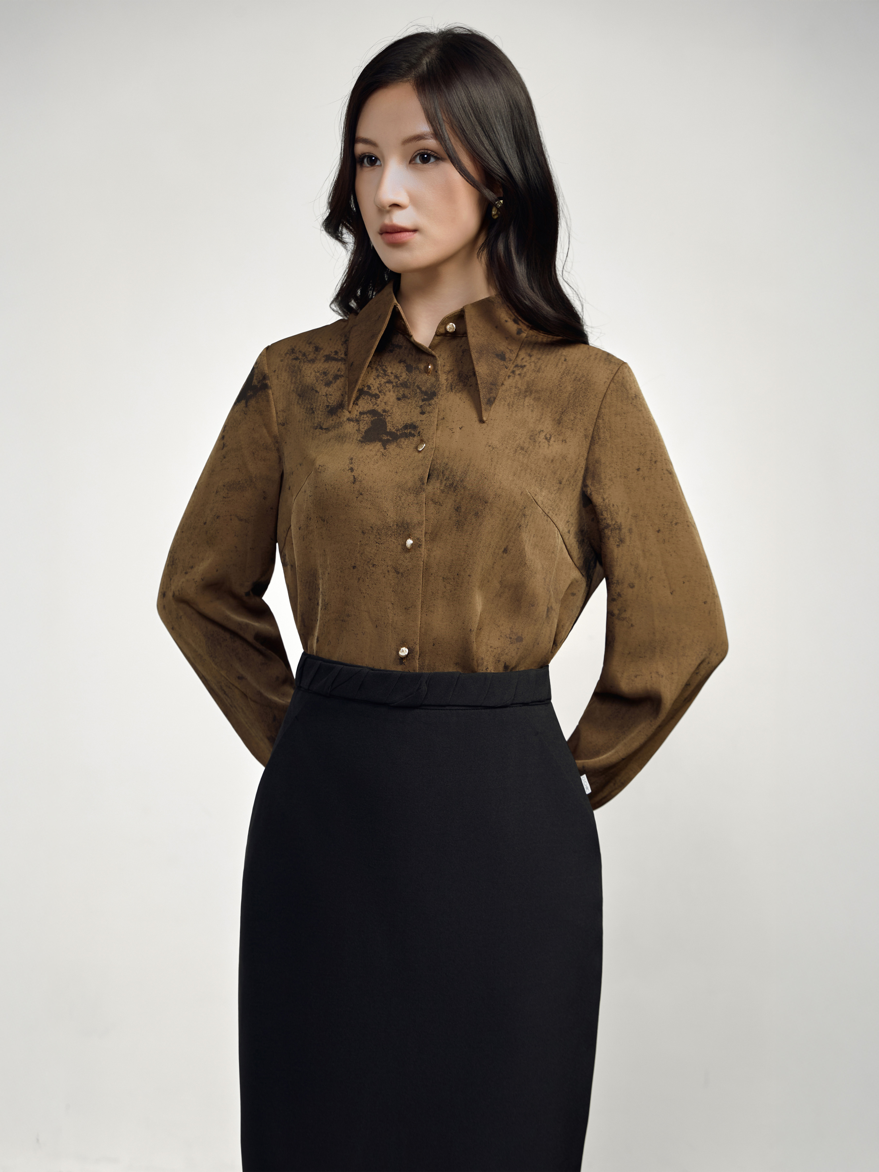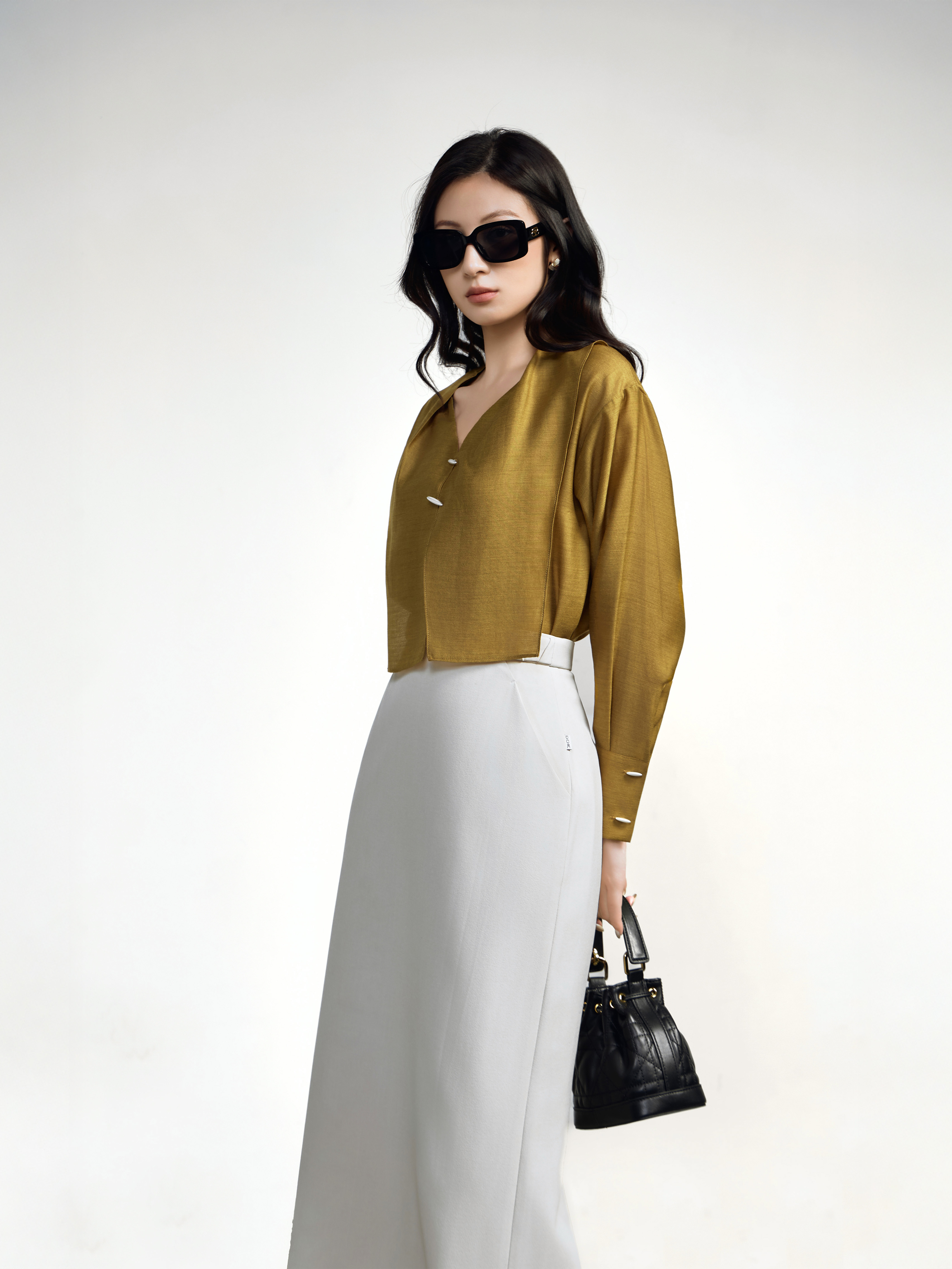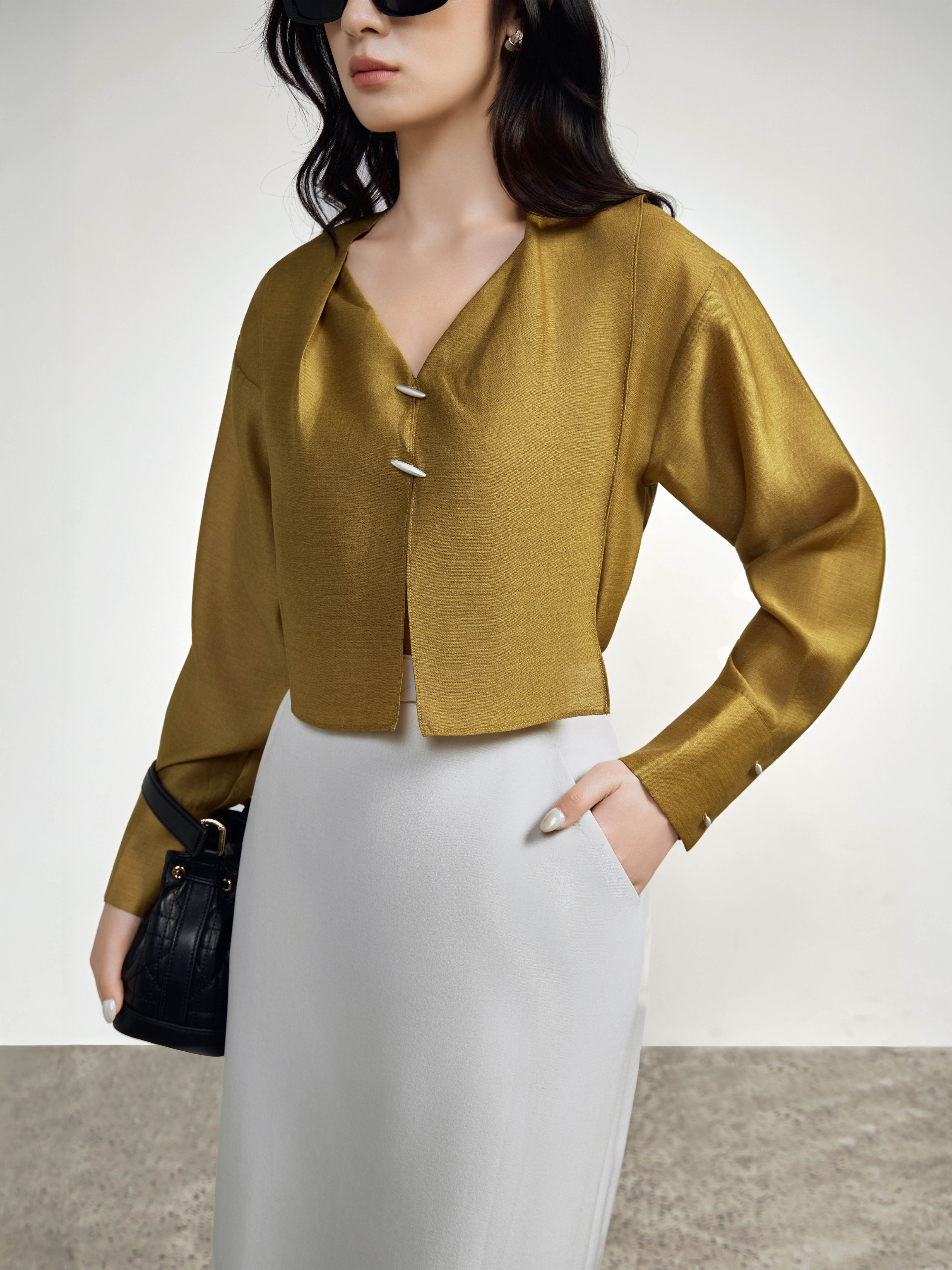 Áo 2 tà cổ gập dài tay