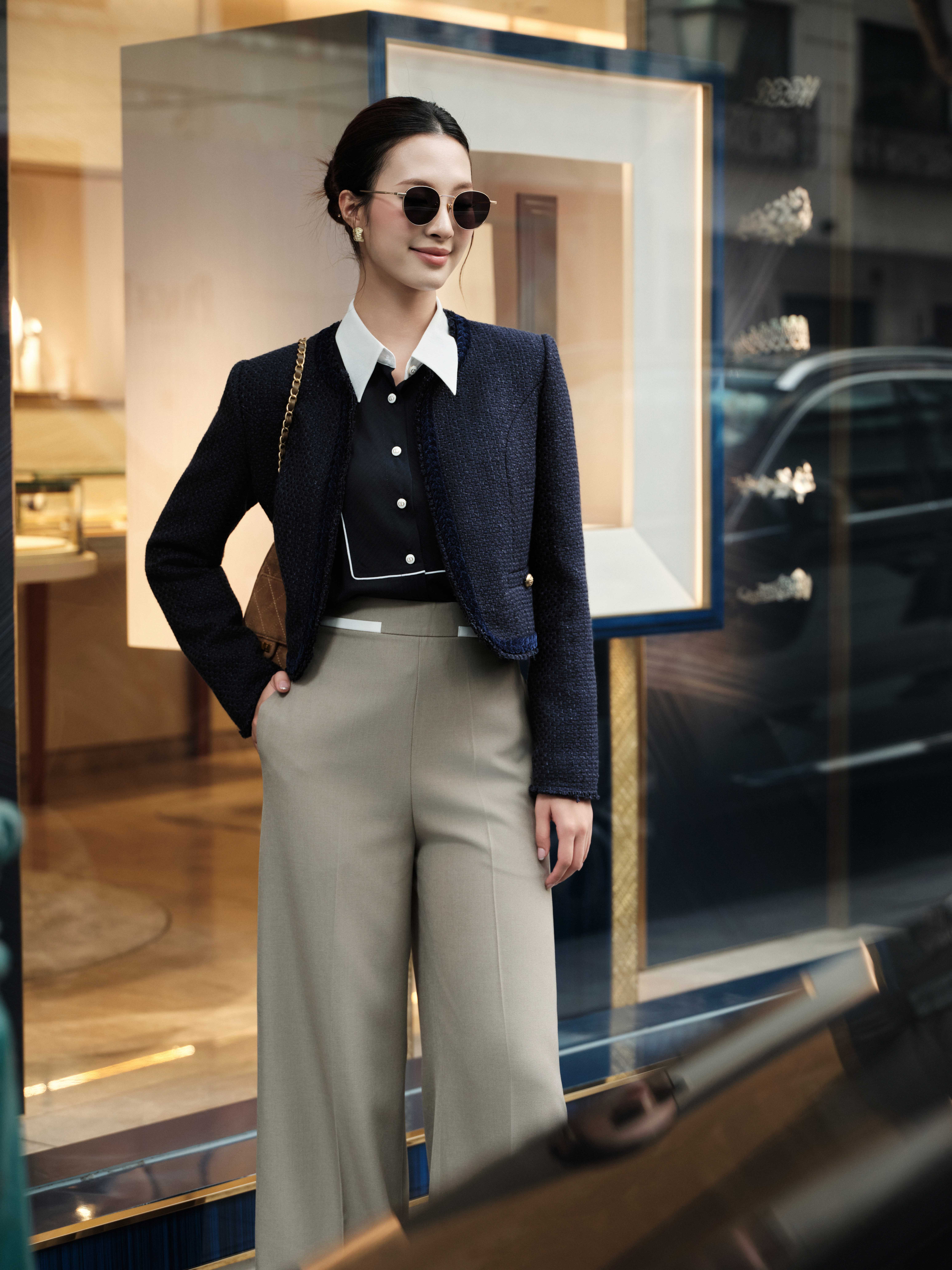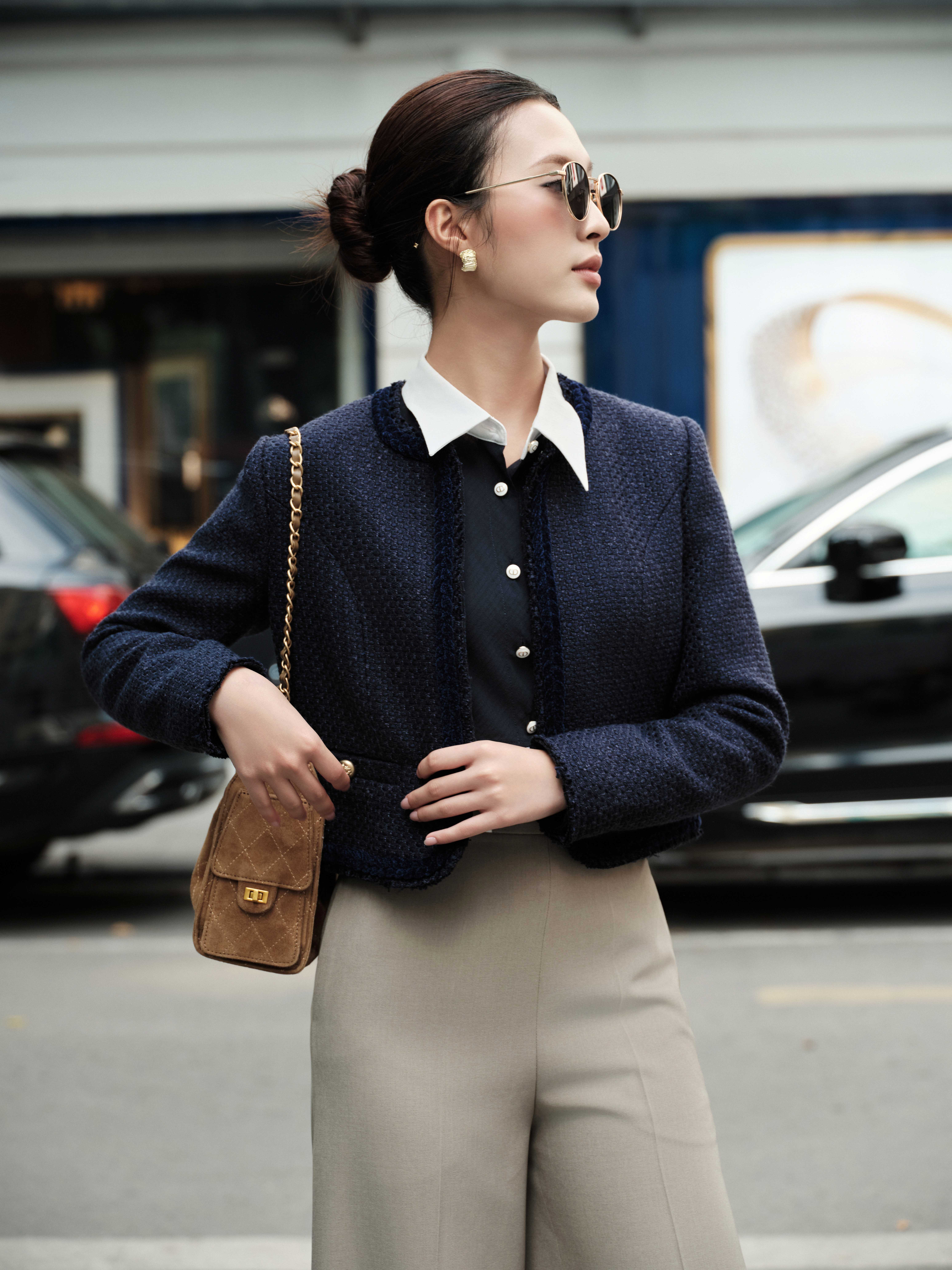 Áo sơ mi cổ đức tay dài có nắp túi ngực