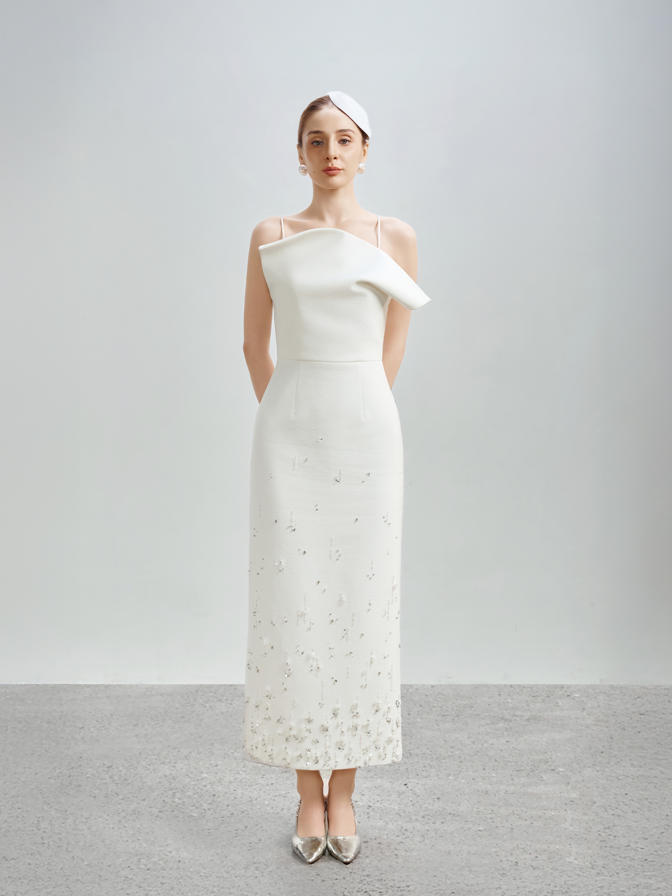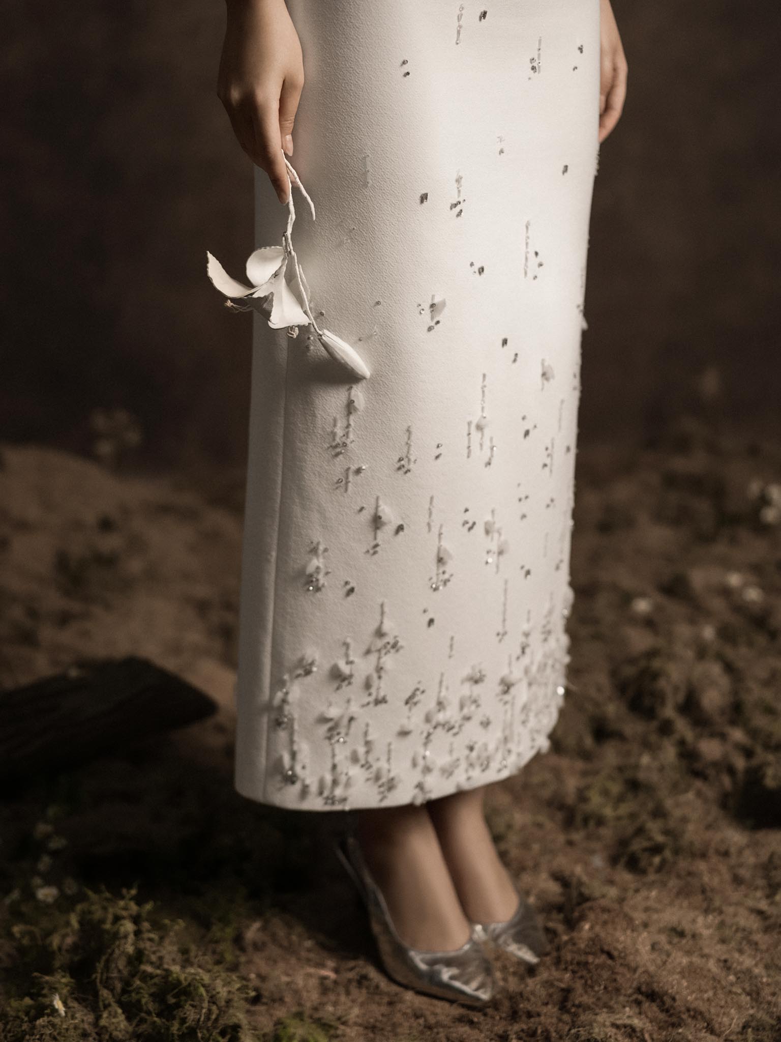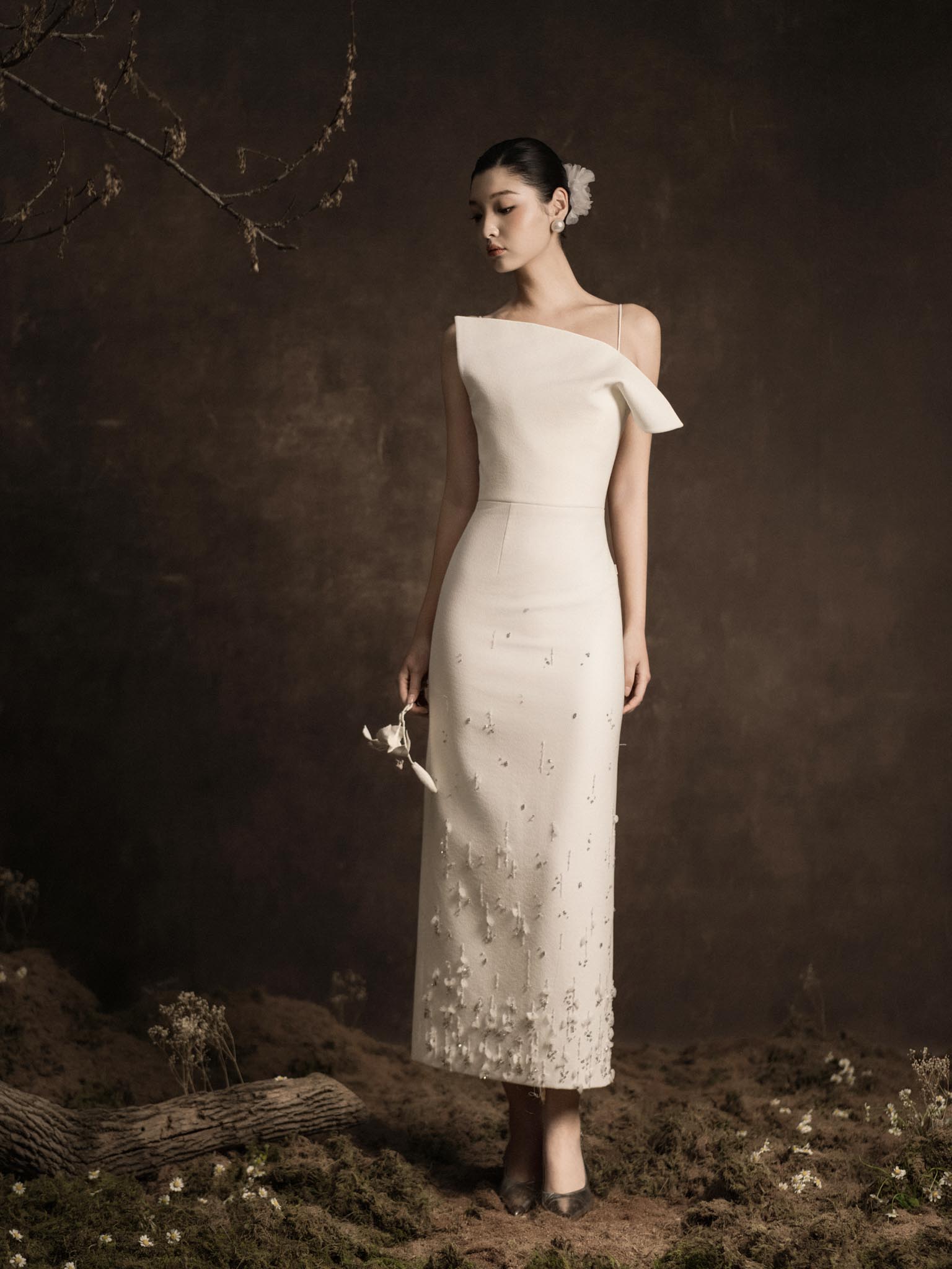 Váy 2 dây vạt ngực chéo đính hoa