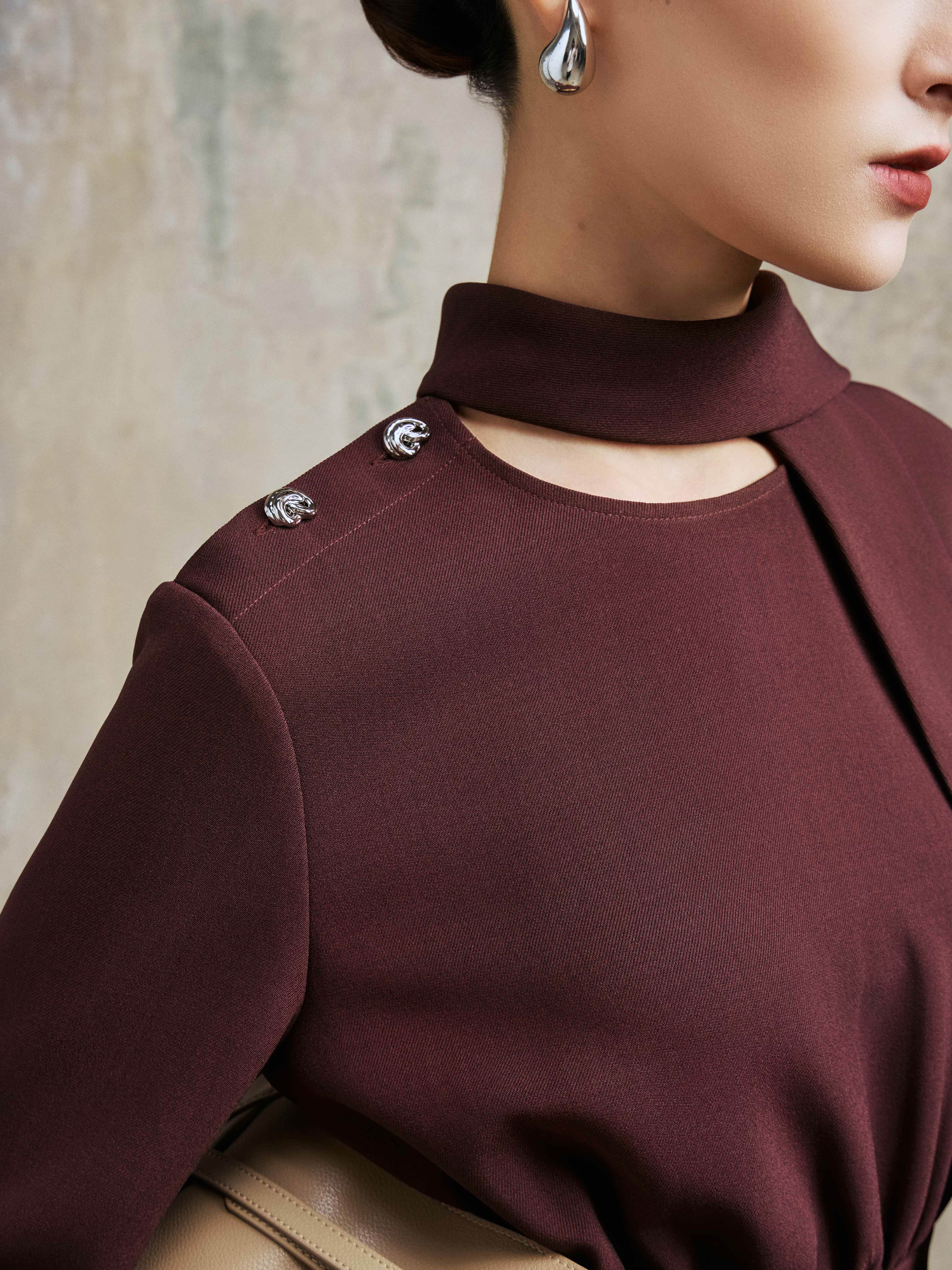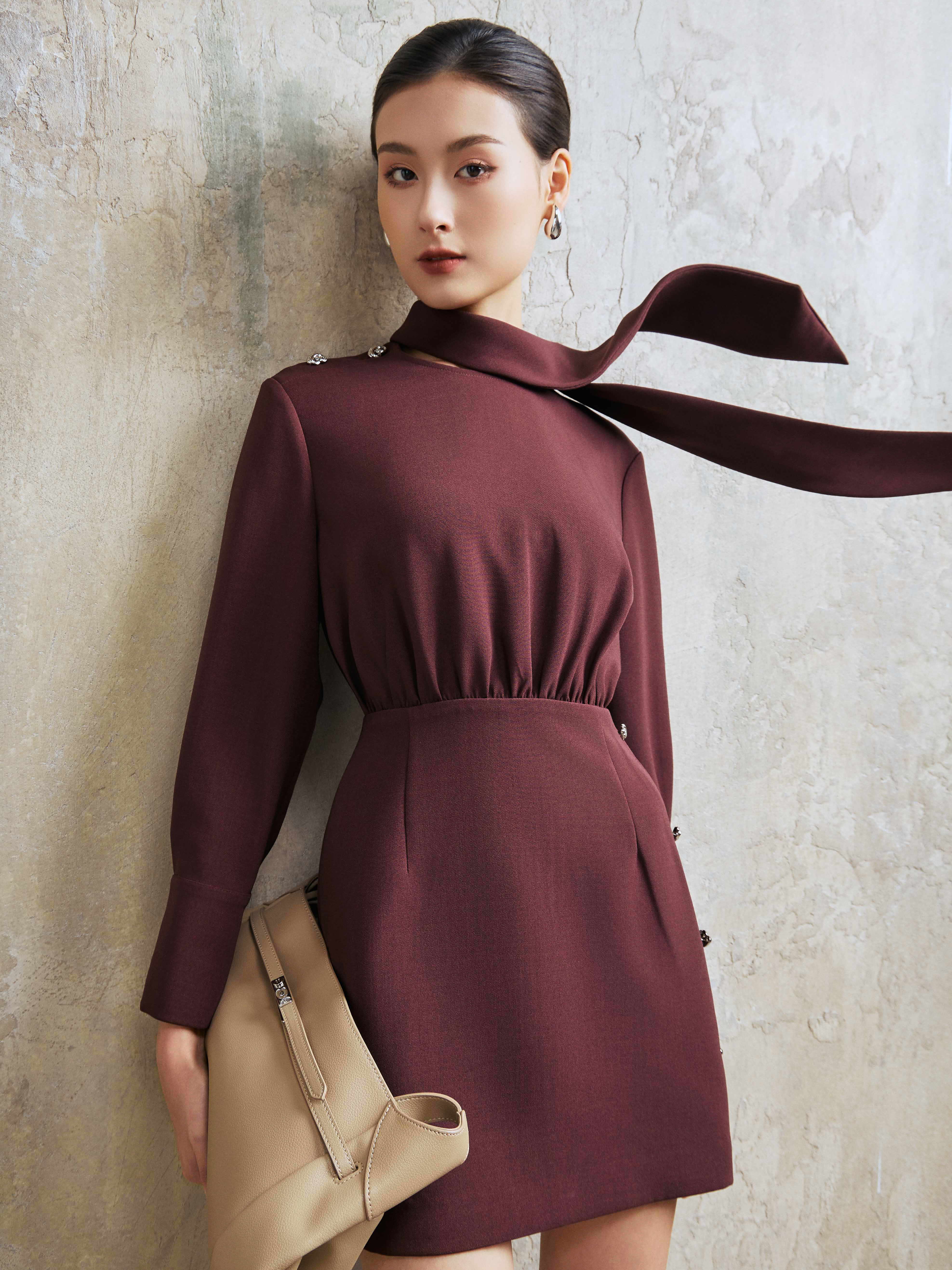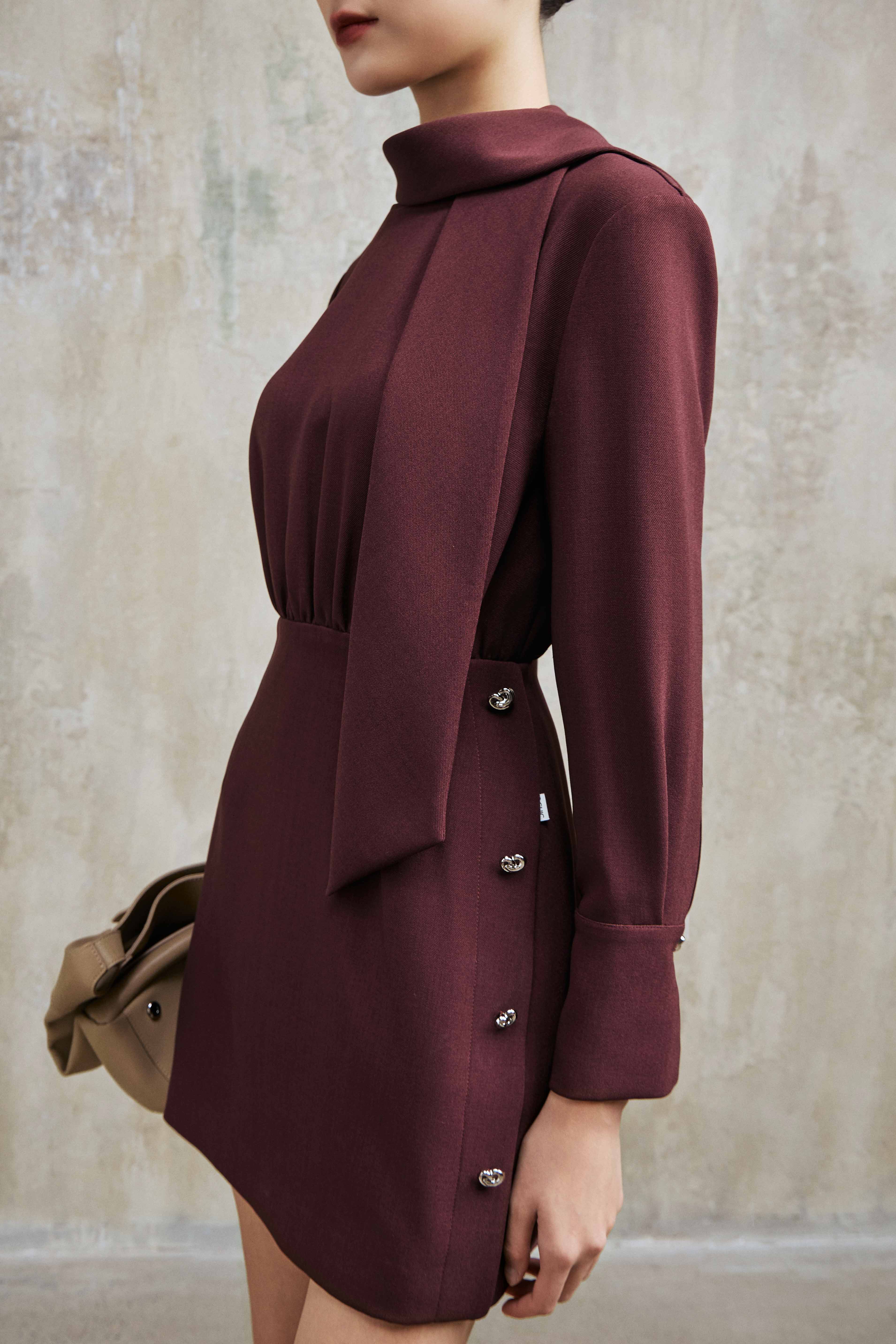 Cổ áo có khăn cổ liền, có thể thắt nơ tùy ý