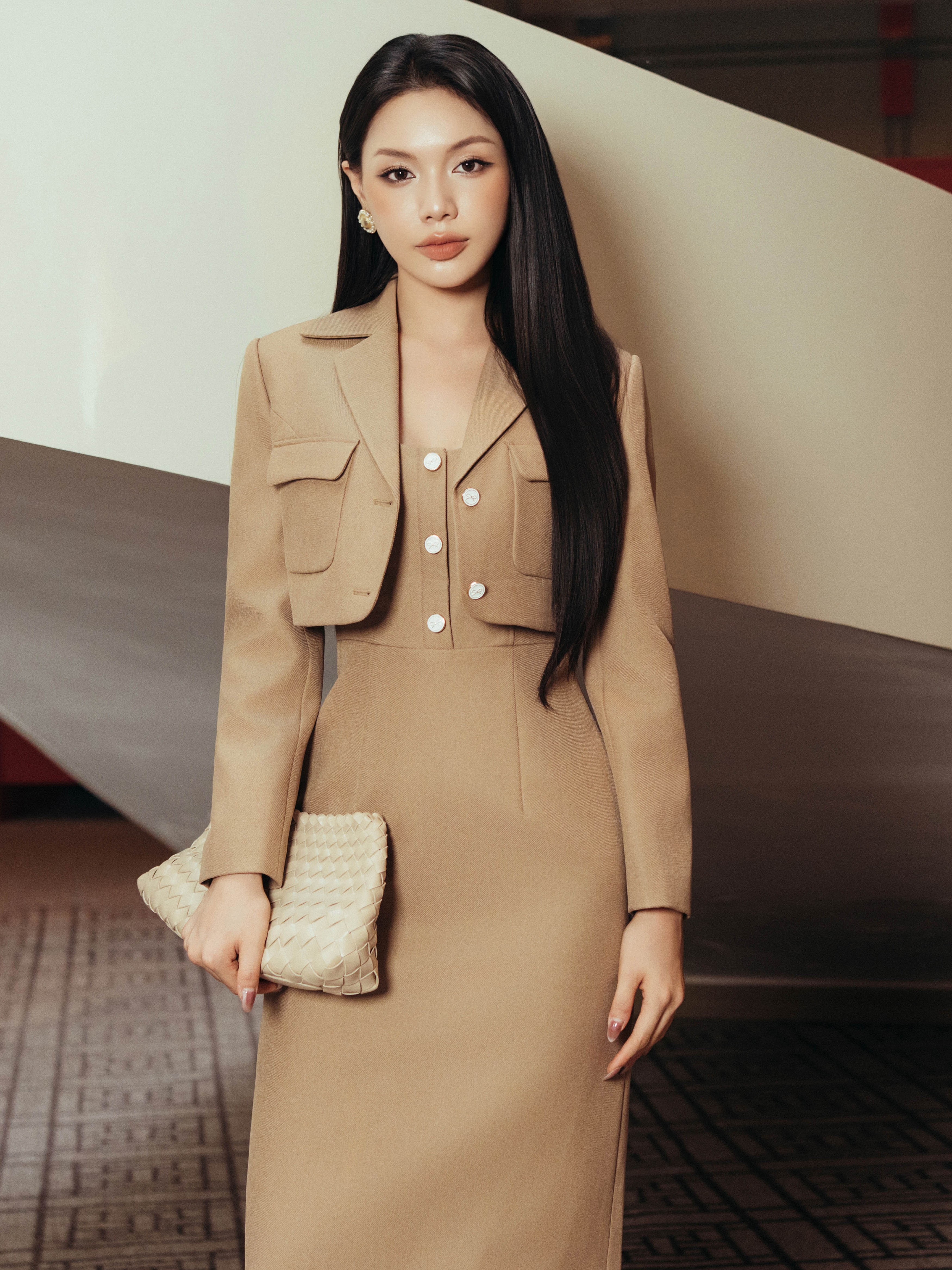 Áo khoác 2 chi tiết cổ 2 ve_Váy trong