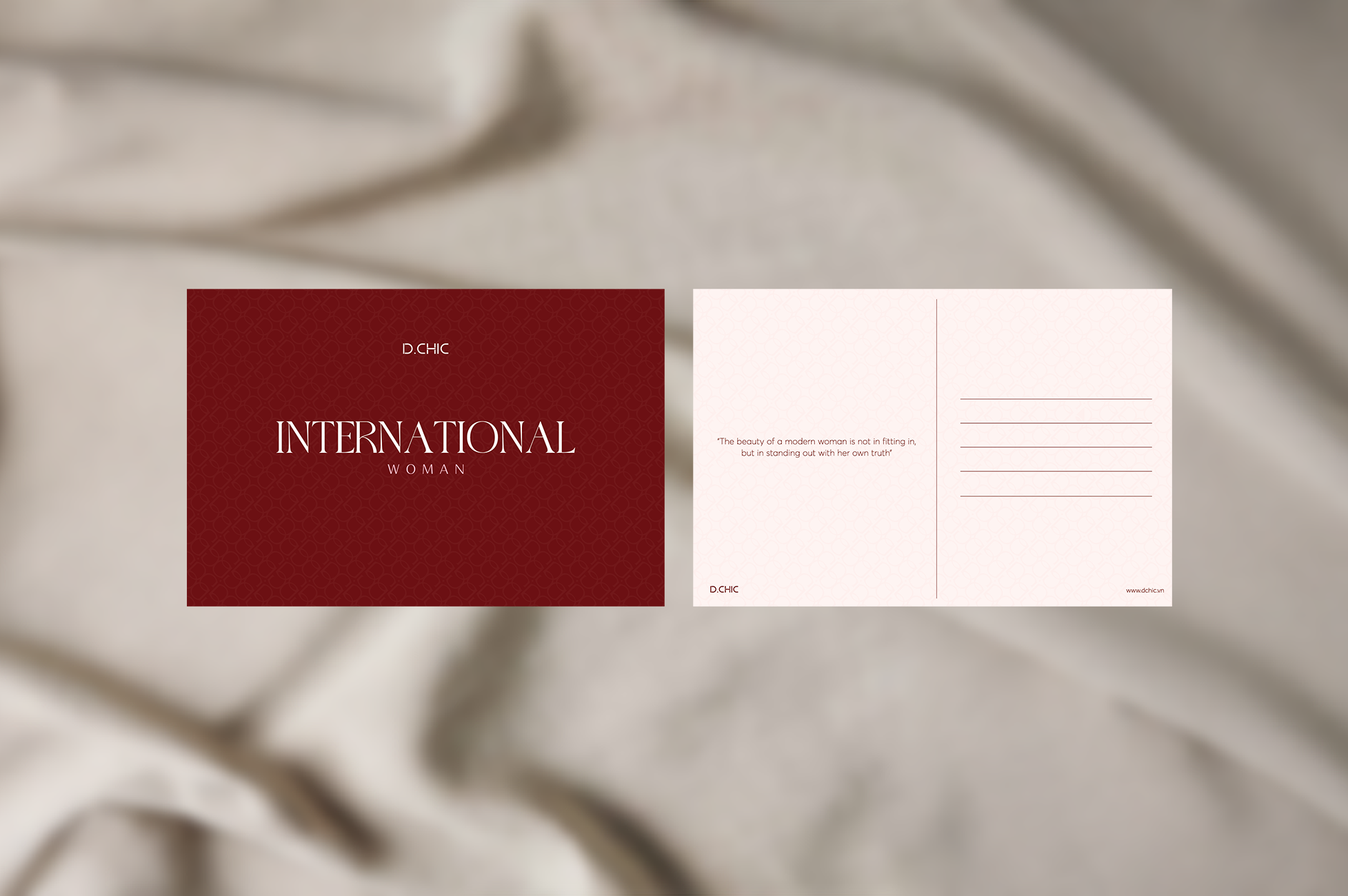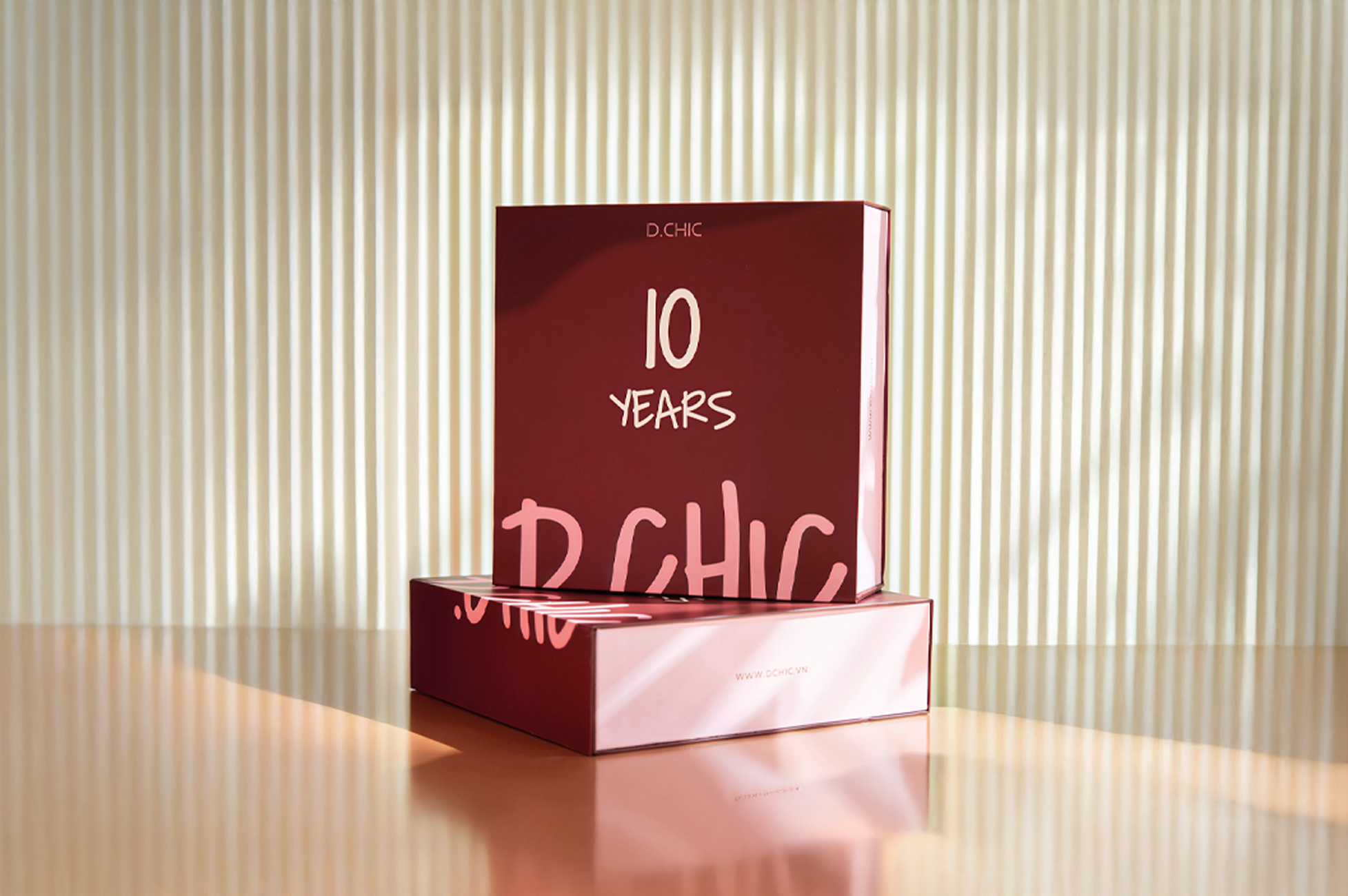 Đánh dấu cột mốc kỷ niệm thành lập 10 năm, D.CHIC ra mắt bộ nhận diện mới với họa tiết Monogram D&C độc quyền - được hình thành từ sự giao thoa uyển chuyển giữa hai ký tự D và C – dấu ấn riêng của Thương hiệu. Những đường cong mềm mại đan xen, lặp lại liên tục như một bản nhạc thị giác, vừa mạnh mẽ vừa tinh tế, gợi nên nhịp điệu bất tận của thời trang. Bộ nhận diện xuất hiện trên hầu hết các ấn phẩm POSM Fall/Winter 2025 như Bộ Túi hộp, Thank you card, bill-holder,...