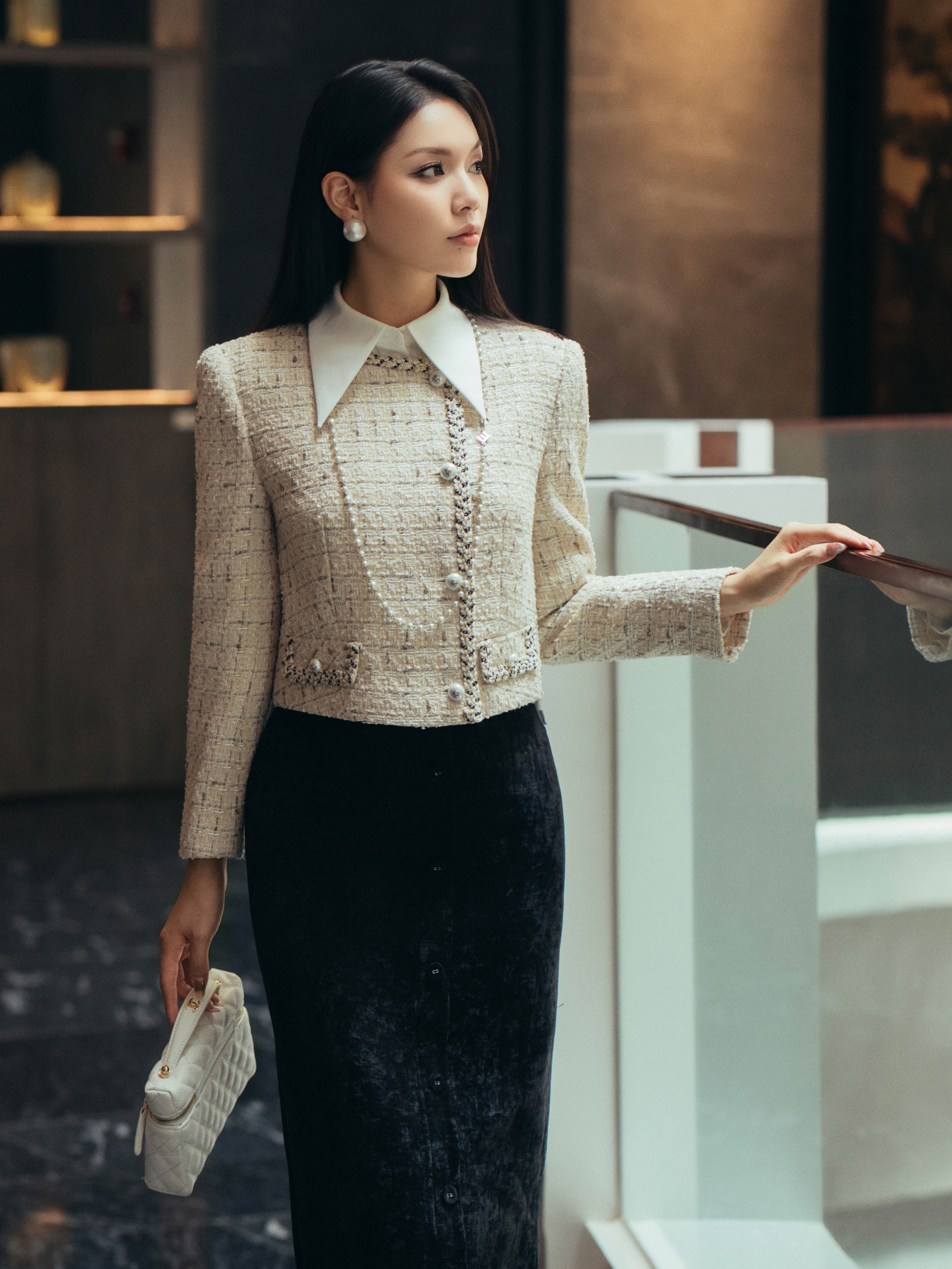 Áo khoác 2 chi tiết cổ 2 ve_Váy trong